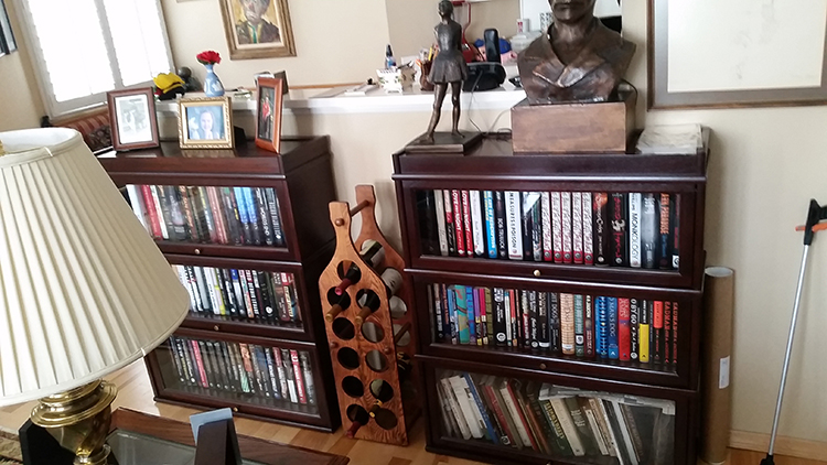 Shelving method (by genre, author, signed copies): WALL TO WALL CASES: SIGNED FIRST EDITIONS; FIRST EDITIONS; ALL OTHERS - LAWYER BOOK CASES: SIGNED FIRST EDITIONS BY AUTHOR.
