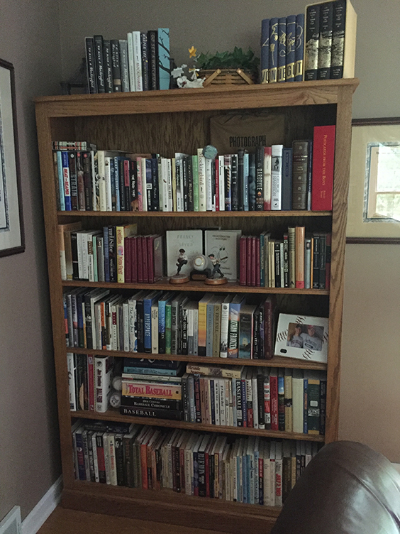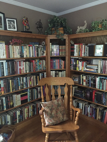 Shelving method (by genre, author, signed copies): I shelve my books fairly randomly and grouped by author. There are some loose connections between what authors are shelved near others, but as my number of books grow (but not my number of shelves), this has become looser.