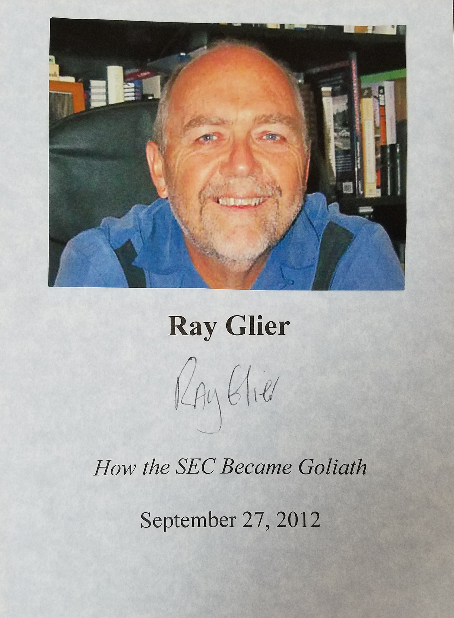 RAY GLIER (pictured below from our Wall of Fame) is a respected sportswriter and author who has written for The New York Times, Washington Post, Boston Globe and many others. He has worked at his craft for more than forty years. Thank you Ray Glier for signing our books.