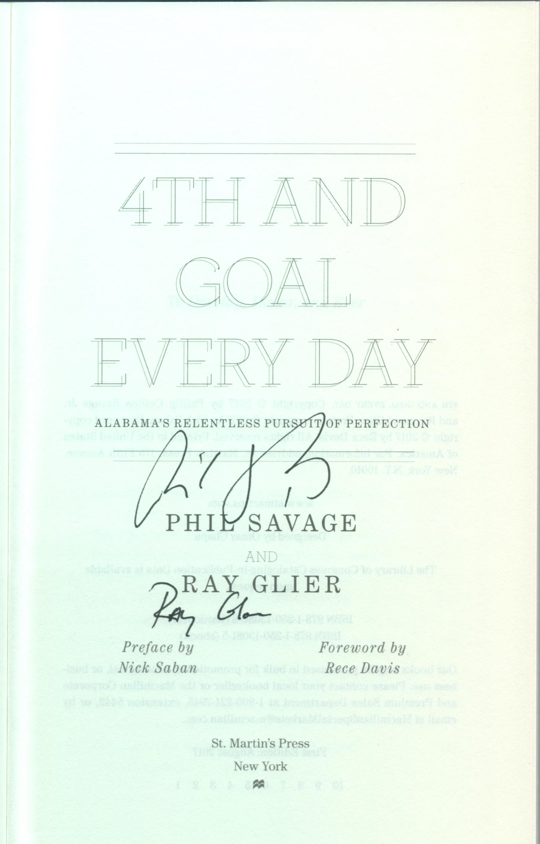 4TH AND GOAL EVERY DAY: ALABAMA'S RELENTLESS PURSUIT OF PERFECTION is a must read for Bama fans and foes alike. The faithful will appreciate the total open door of Coach Saban's process, and haters will be able to steal secrets of how the Crimson Tide is able to stay on top.