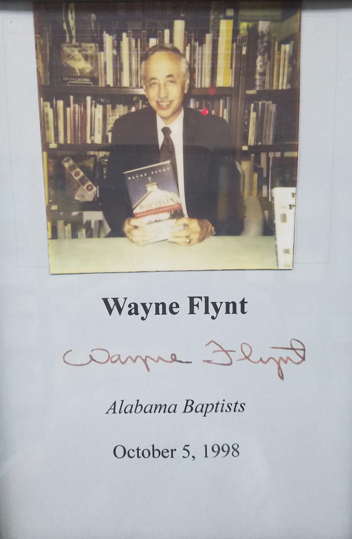 WAYNE FLYNT (pictured below from our Wall of Fame) is Alabama's most respected historian, the author of more than a dozen books, and Harper Lee's most regular visitor during her last years. Thank you Wayne Flynt for signing our books.