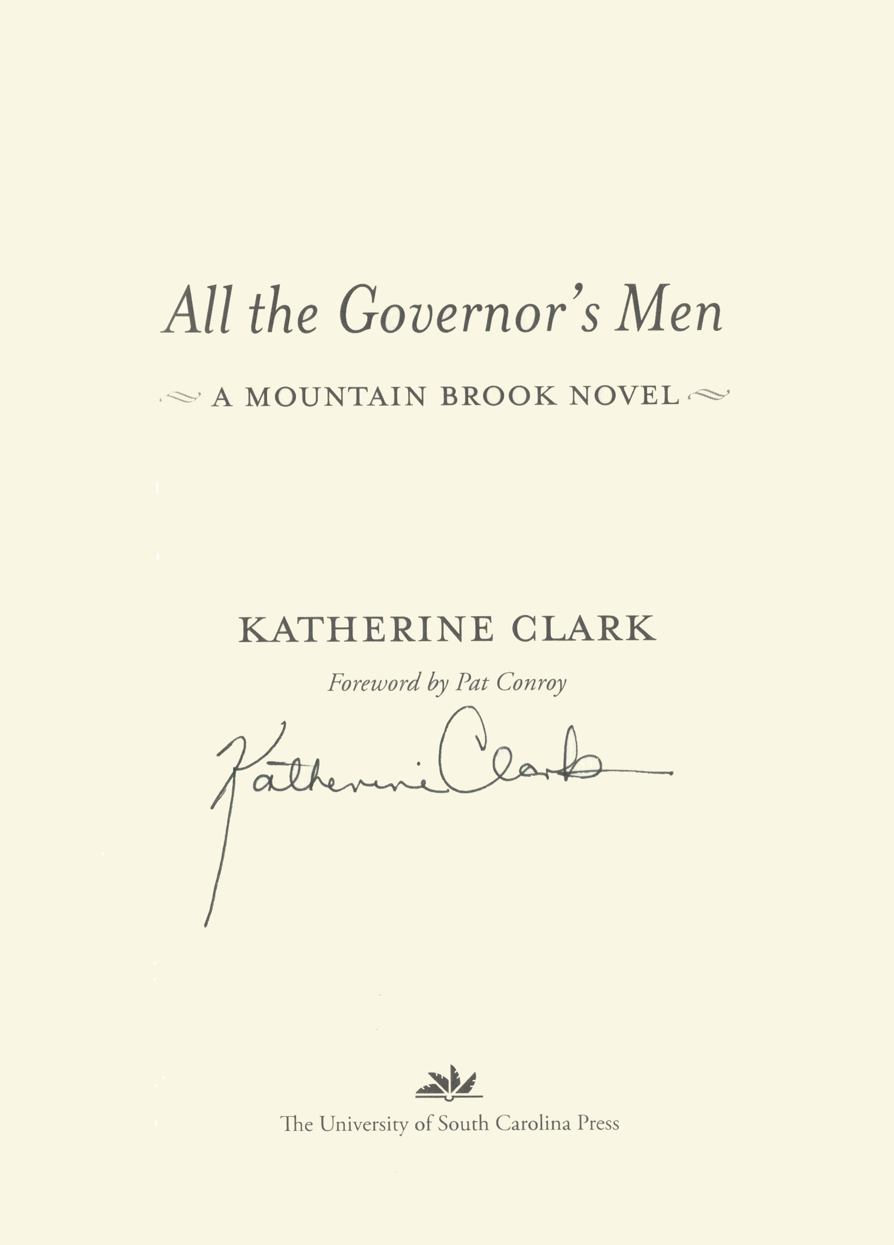 ALL THE GOVERNOR'S MEN: A MOUNTAIN BROOK NOVEL with a foreword by Pat Conroy, is a fictional account of George Wallace's run for Governor in 1982 when he faces a young progressive. This darkly comic novel with an unspoken sexual overtone depicts the social and political landscape of Alabama that is like no other, and yet like all others. This title has been selected as a Booksmith Timeless Classic, meaning it is among the best of the best for the last several decades. We will ship it free anywhere in the United States. You may view every Booksmith Timeless Classic by clicking https://www.alabamabooksmith.com/booksmith-timeless-classics.
