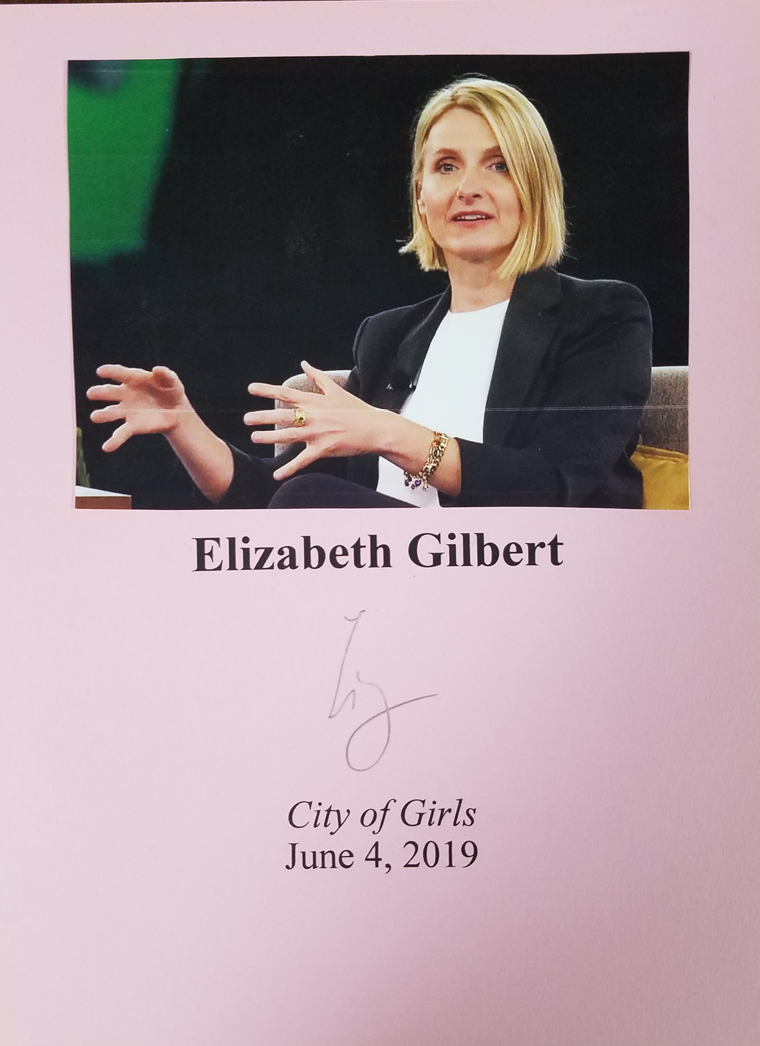 ELIZABETH GILBERT (pictured below on our Wall of Fame) has sold twenty-five million books, spent 200 weeks on the New York Times Best-Seller list, and has been translated into fifty languages. Thank you Elizabeth Gilbert for signing our books.