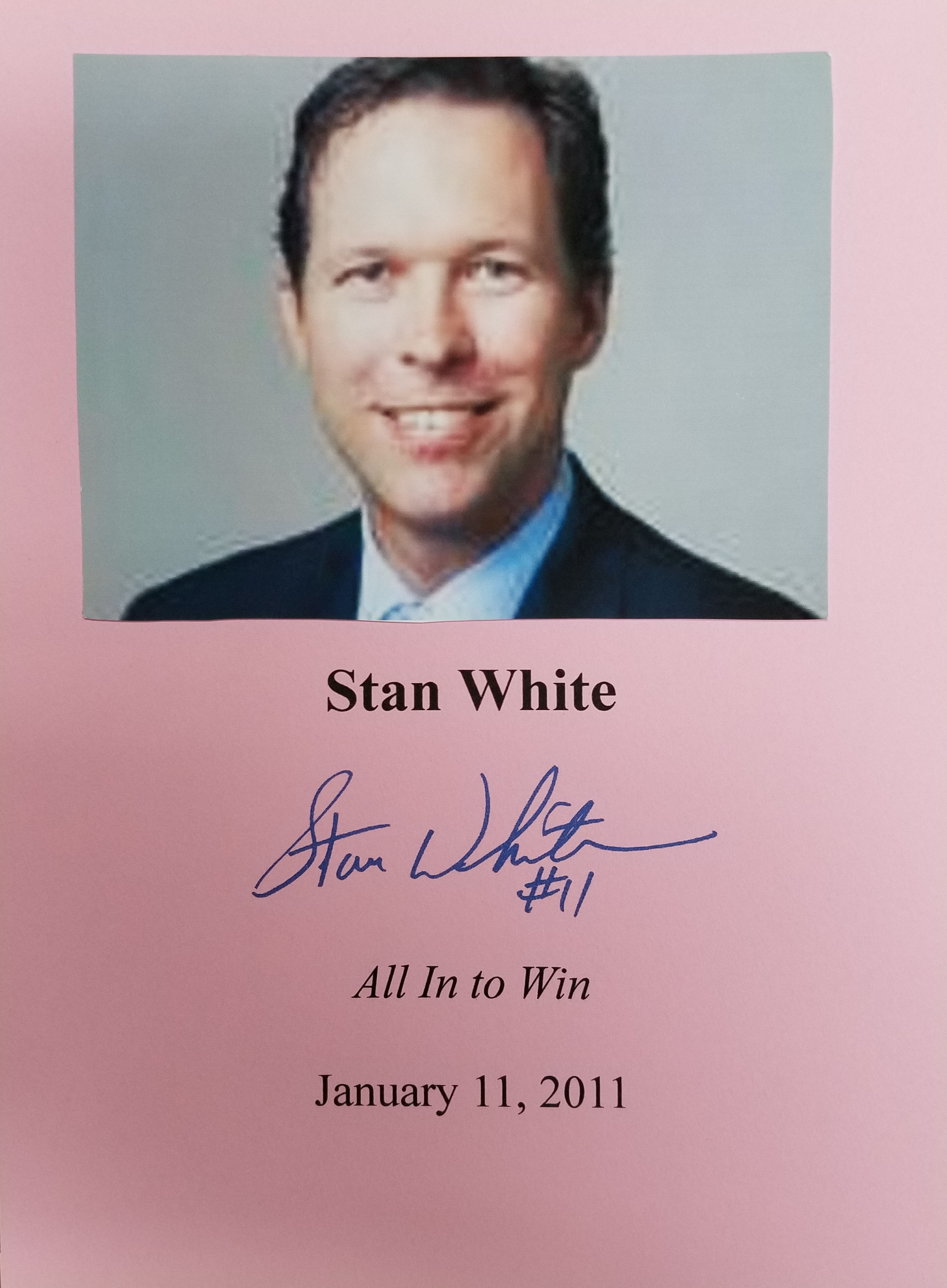 THIS COPY (shown below) was hand signed on the endpaper by Stan White at the store. It is a new, unread first edition opened only for signing and comes with a certificate authenticating the signature. Published in January, 2011 by The Birmingham News.