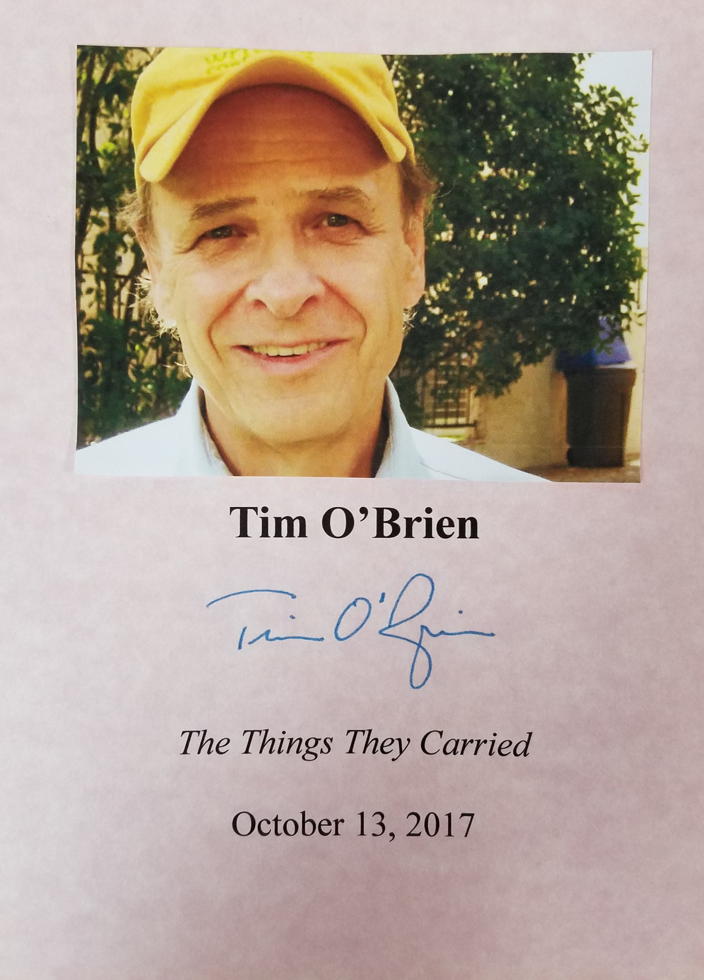 TIM O'BRIEN (shown below on our Wall of Fame) won the National Book Award and is considered along with Robert Olen Butler as America's two leading writers of the Vietnam War. He has won a boatload of awards in his craft both in this country and abroad. He served in Vietnam in 1969 and 1970. Thank you Tim O'Brien for your service and thank you for signing our books.