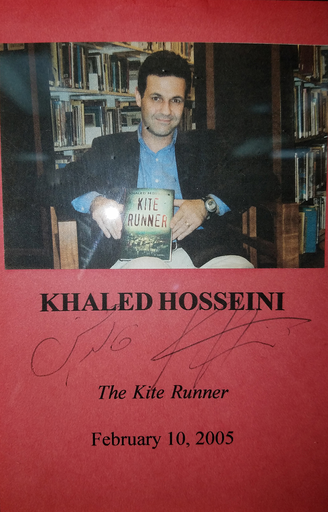 KHALED HOSSEINI (pictured below from our Wall of Fame) is one of our all-time favorites. When he visited Birmingham for And the Mountains Echoed, we chastised the audience of more than six-hundred that when we hosted him for The Kite Runner about twenty-five people showed up. The point is that you should take every opportunity to meet an author, even if they all may not spend two hundred weeks on The New York Times best-seller list, as did this one. His books are available  in seventy countries, and have sold more than forty million copies. Khaled Hosseini was named a Goodwill Envoy for the United Nations and created The Khaled Hosseini Foundation to assist children in need around the world. Thank you Khaled Hosseini for signing our books.