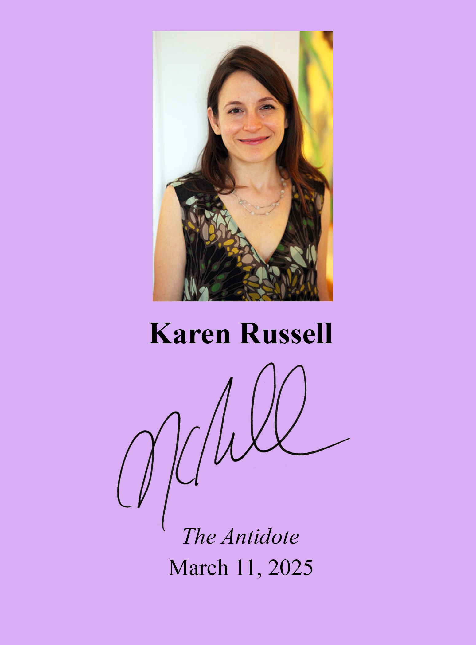 KAREN RUSSELL (pictured below on our Wall of Fame) is a New York Times best-selling, award-winning writer.Thank you Karen Russell for signing our books.