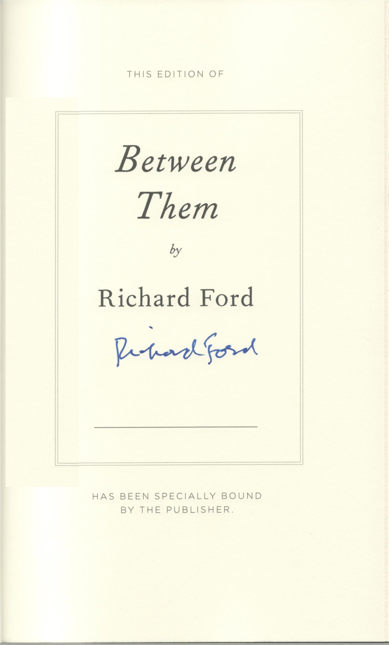 BETWEEN THEM: REMEMBERING MY PARENTS is Richard Ford's first work of nonfiction, and his most intimate and tender. It is his memory of his parent's lives, as well as a look at his own childhood. Included are personal family photographs. The story is told with complete candor, as well as warm humor.