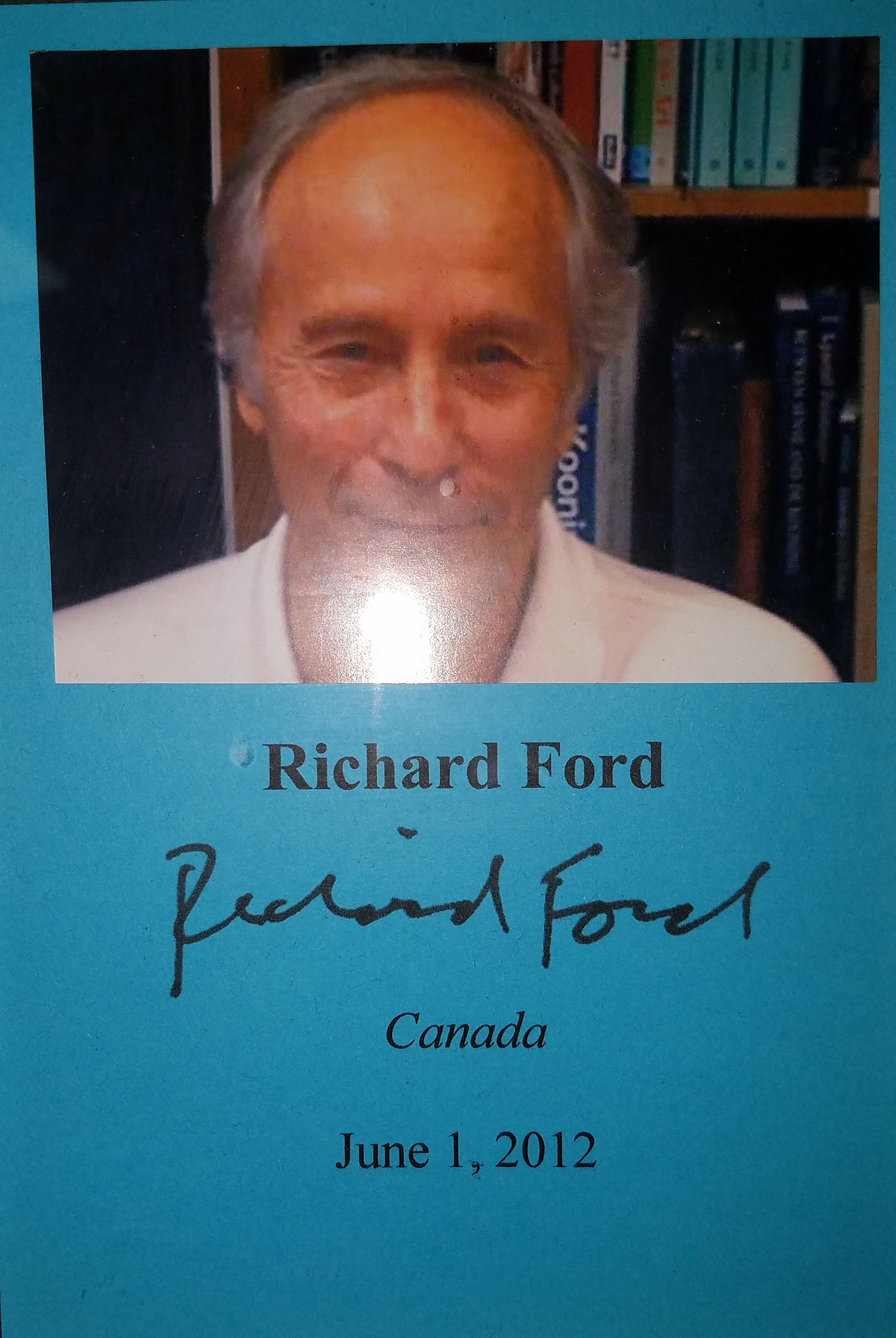 RICHARD FORD (pictured below from our Wall of Fame) is the first writer to win the Pulitzer Prize and PEN/Faulkner in the same year. He was also a finalist for another Pulitzer and has a wagon full of awards for his craft. He was a student of E.L. Doctorow and returned the favor with teaching stints at prestigious universities around the United States and abroad. The Paris Review called him a Master of the short story and critics worldwide consider him a literary giant. Thank you Richard Ford for signing our books.
