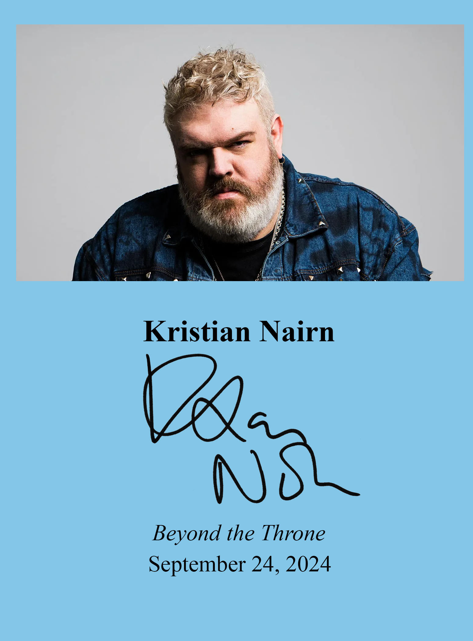 THIS COPY (shown below) was hand signed by Kristian Nairn on a page bound into the book. It is a new, unread, unopened first edition, and comes with a certificate authenticating the signature. Published in September, 2024 by Grand Central, an imprint of Hachette Book Group.