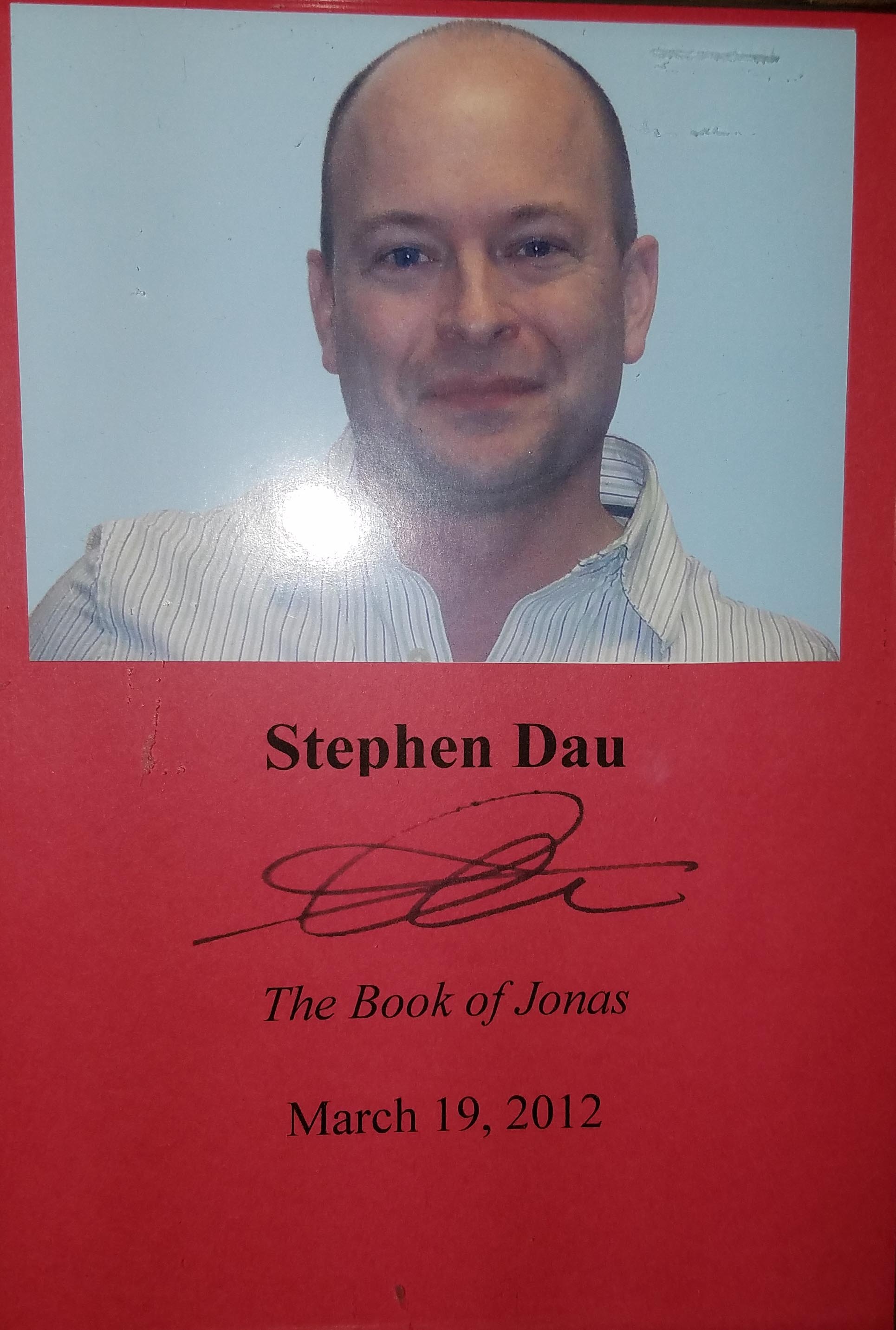 STEPHEN DAU (pictured below from our Wall of Fame) is an American Ex-Pat living in Belgium. He received his MFA from Bennington before publishing his first novel, The Book of Jonas. Thank you Stephen Dau for signing our books.