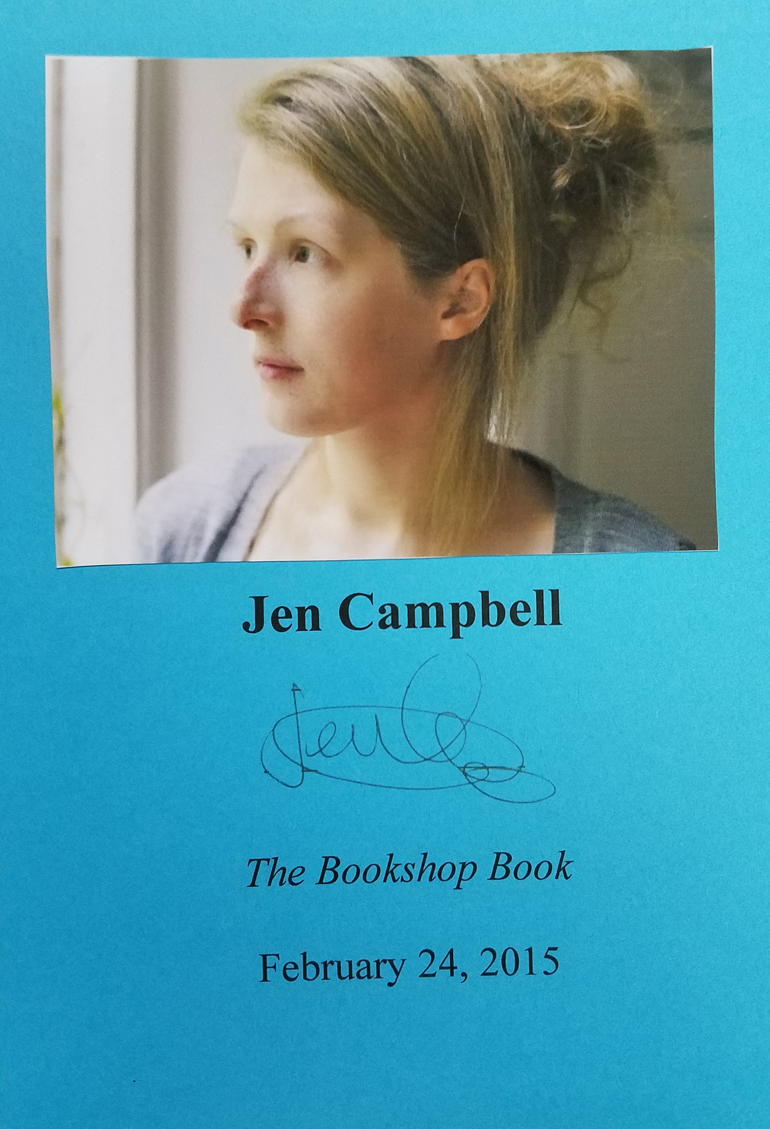 JEN CAMPBELL (pictured below from our Wall of Fame) is an award-winning writer, a poet, and works in an antiquarian bookshop in London. Thank you Jen Campbell for signing our books.