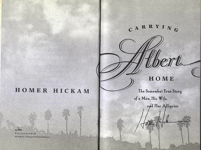 CARRYING ALBERT HOME: THE SOMEWHAT TRUE STORY OF A MAN, HIS WIFE, AND HER ALLIGATOR is a fun tale based on some facts. Before the author's mother met and married Homer Hickam, Sr., her boyfriend was Hollywood song and dance man and star of The Beverly Hillbillies, Buddy Ebson. For a wedding gift, the ex presented the couple a pet alligator named Albert. When Homer, Sr. insisted Albert be returned, the trip from West Virginia to Florida became a hoot, including some parts that were embellished and some that came wholly from the author's vivid imagination.