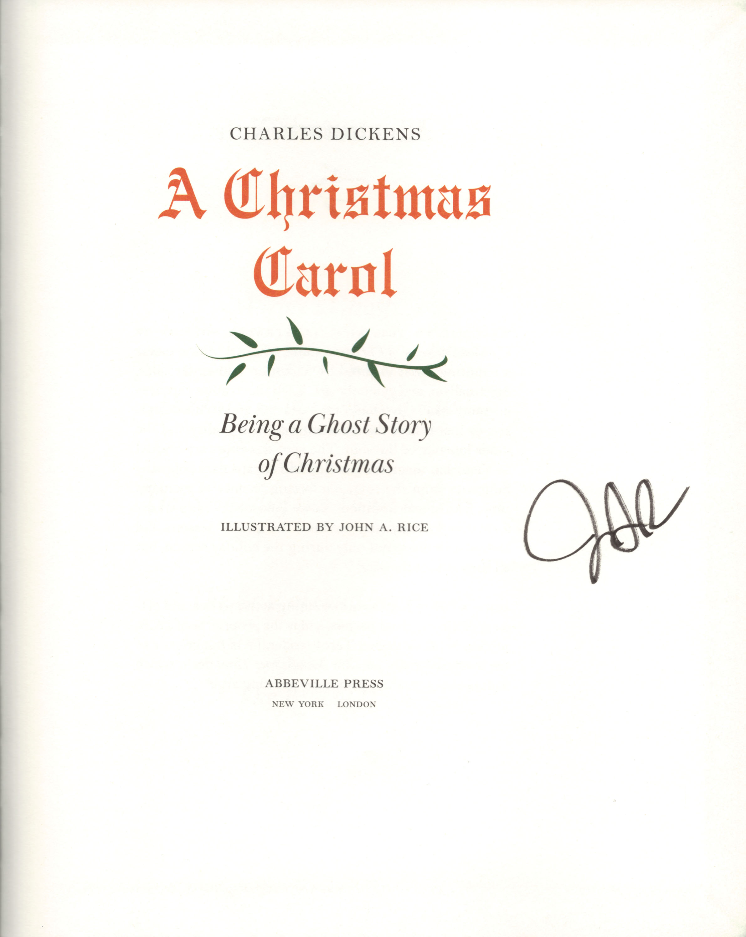 A CHRISTMAS CAROL: BEING A GHOST STORY OF CHRISTMAS is an exquisite edition of the beloved Dickens tale with breathtaking full-color illustrations by acclaimed artist John A. Rice. The engraved and embossed leatherette cover is also designed by John A. Rice. The gilt edge completes the presentation making this a beautiful addition to the season's decorating and an unforgettable gift.