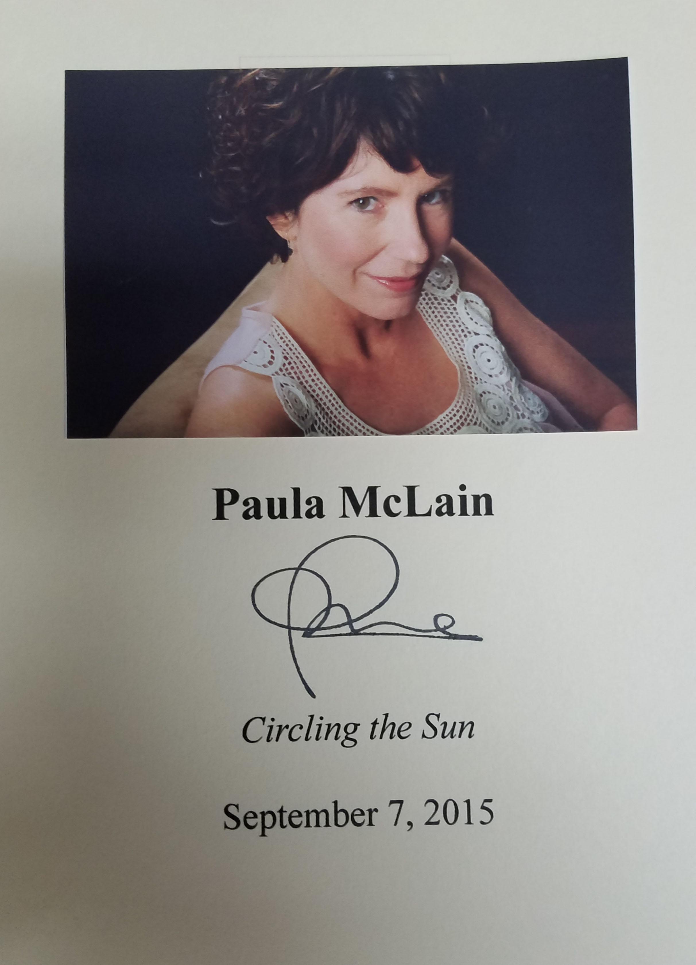 PAULA MCLAIN (pictured below from our Wall of Fame) is a best-selling author and poet. She has received two important fellowships. Thank you Paula McLain for signing our books.