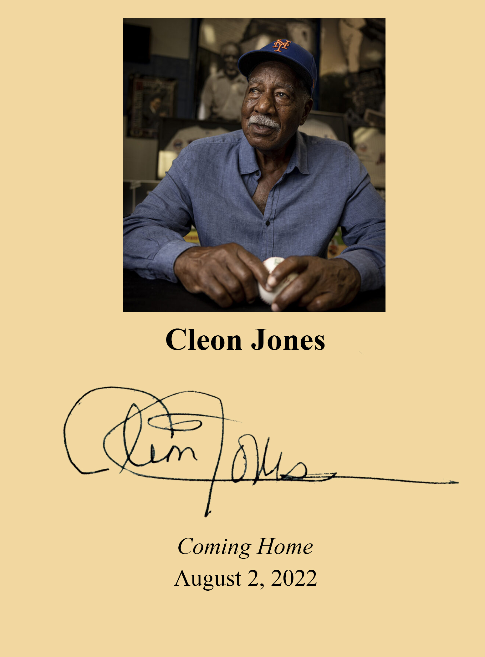 THIS COPY (shown below) was hand signed by Cleon Jones on a page bound into the book. It is a new, unopened first edition and comes with a certificate authenticating the signature. Published in August, 2022 by Triumph Books and distributed by the Independent Publishing Group.