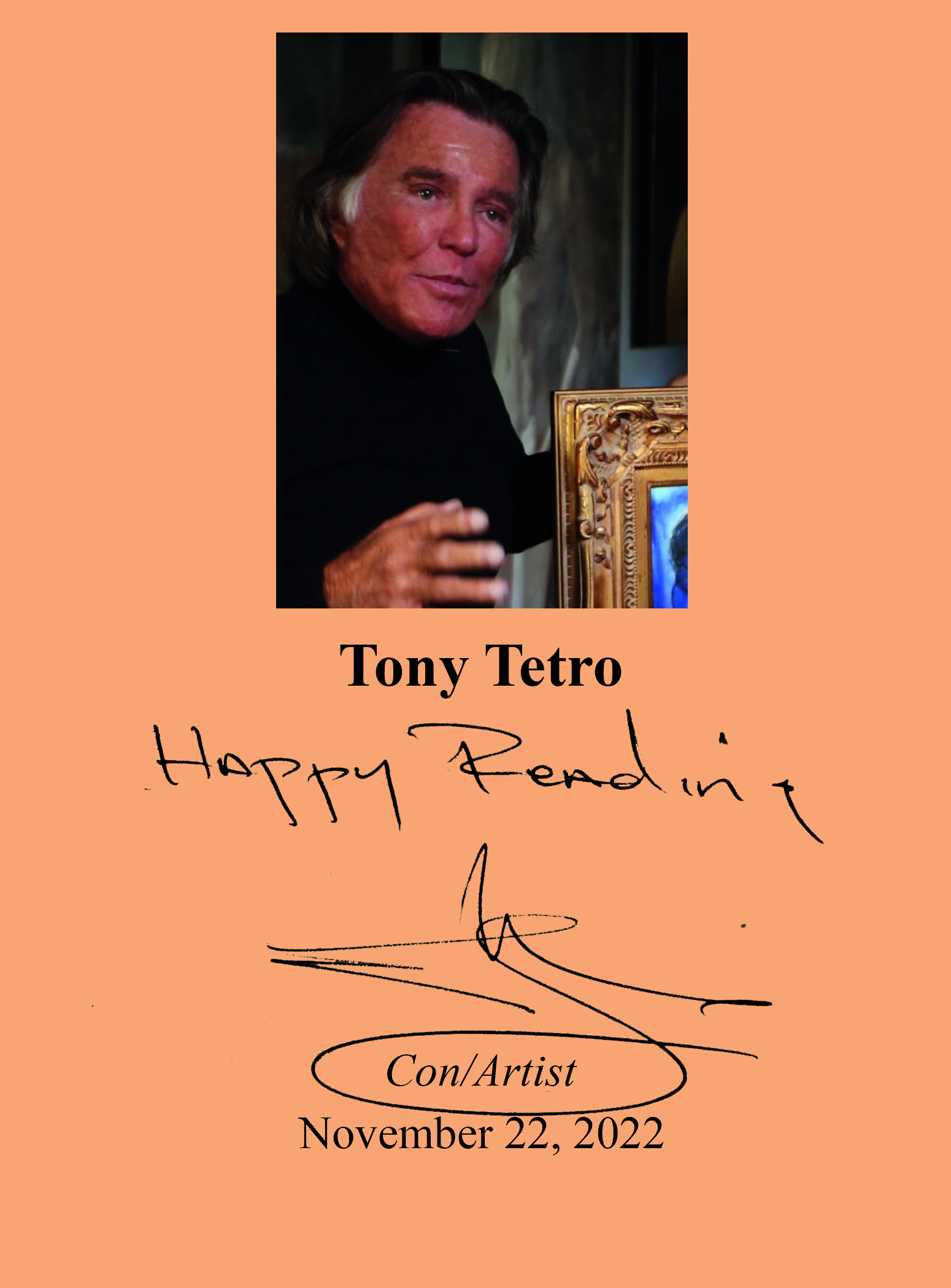 TONY TETRO (pictured below on our Wall of Fame) is known in art circles around the globe as the finest forger ever known. After serving his time, he's gone straight and is a popular guest on radio and television. Thank you Tony Tetro for signing our books - we authenticate this is Tony's real signature.