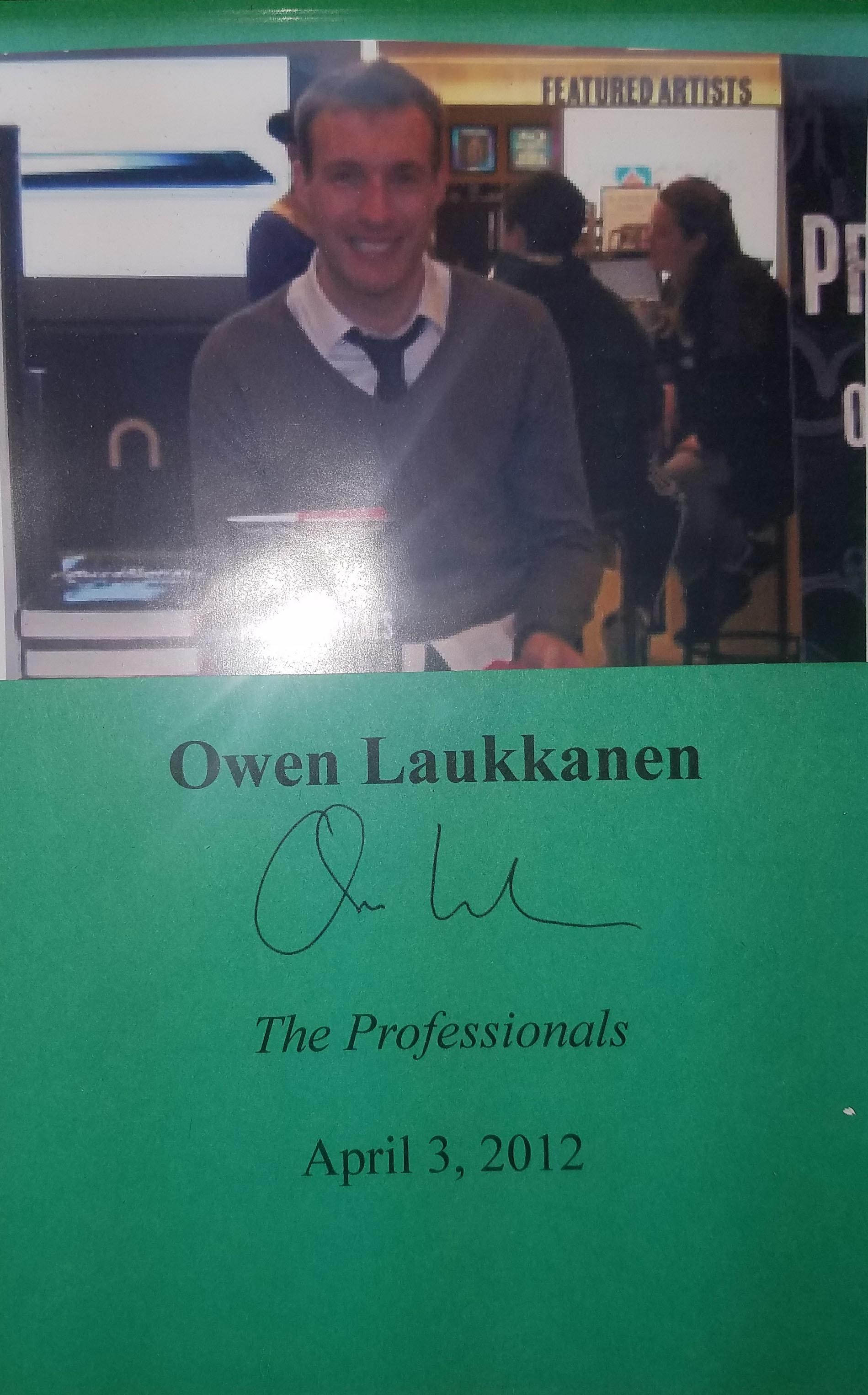 OWEN LAUKKANEN (pictured below from our Wall of Fame) traveled the lush casinos of Monaco and Macau writing about poker tournaments. This gig, right out of college, provided terrific fodder for a successful mystery author. Thank you Owen Laukkanen for signing our books.