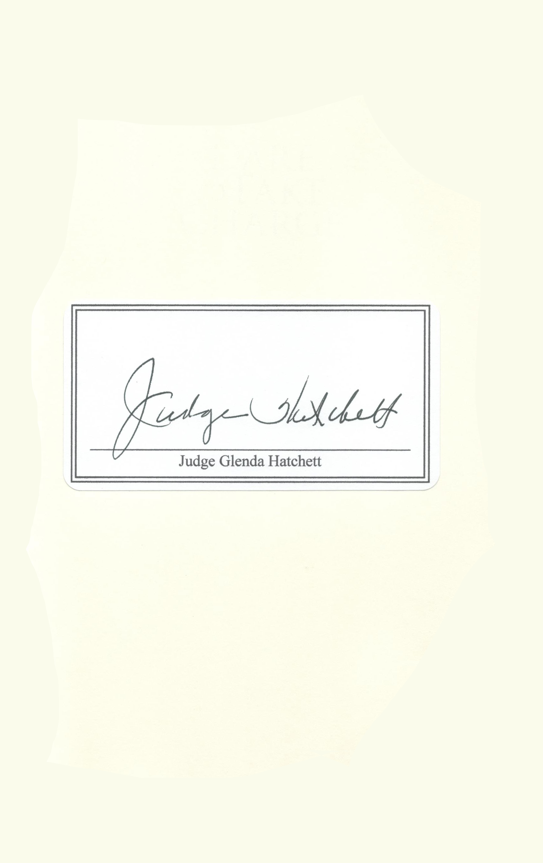 THIS COPY was hand signed by Judge Hatchett on a book plate. It is a new, unread first edition opened only for the bookplate and comes with a certificate authenticating the signature. Published in September, 2010 by Center Street, an imprint of Hachette Book Group.