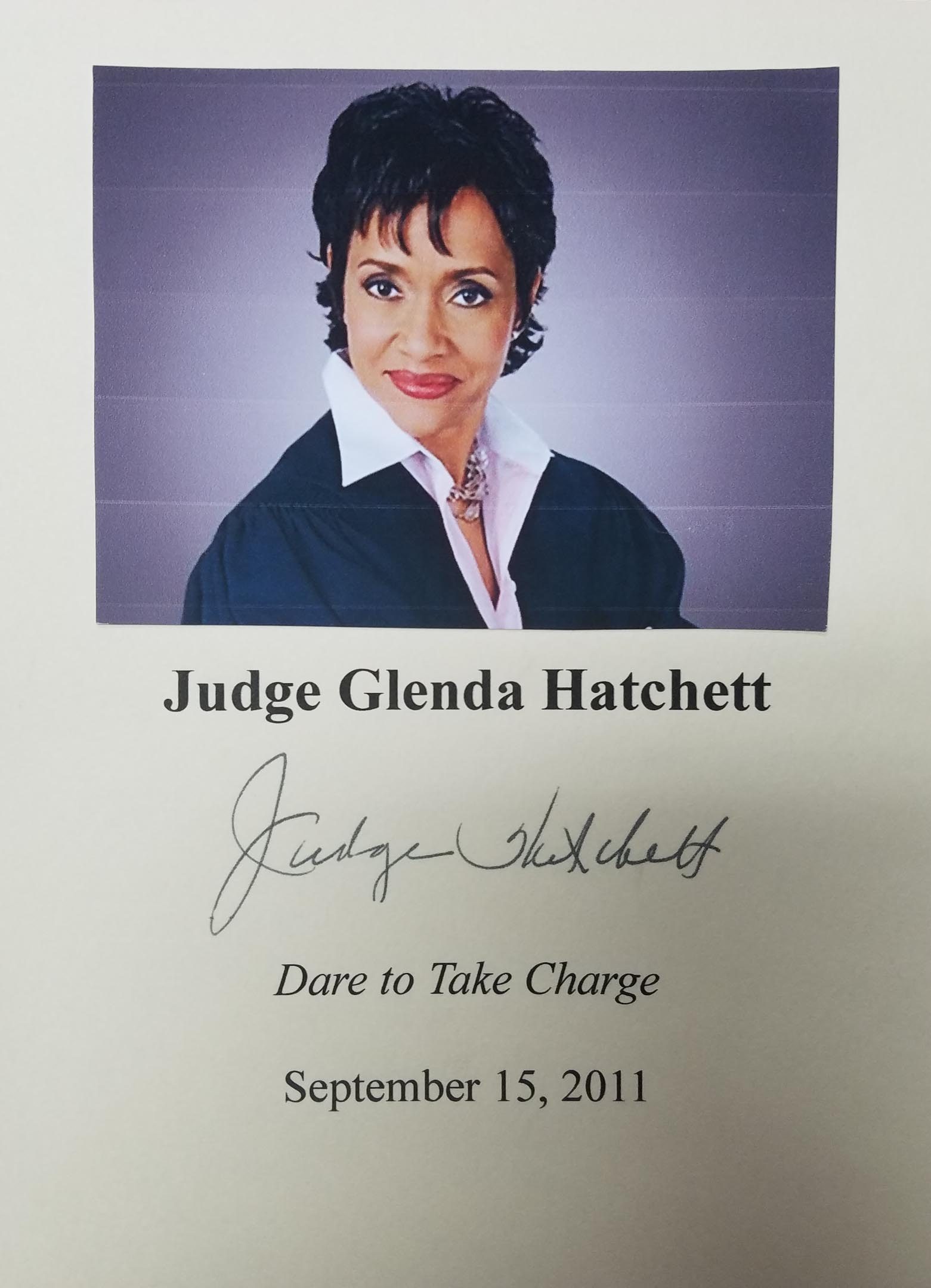 JUDGE GLENDA HATCHETT (pictured below from our Wall of Fame) was a highly successful businesswoman prior to taking the bench, and named on the Ebony magazine list of "100 Best and Brightest Women in Corporate America". Her television show was nominated for two Emmys. Her books have all been best-sellers. Thank you Judge Glenda Hatchett for signing our books.