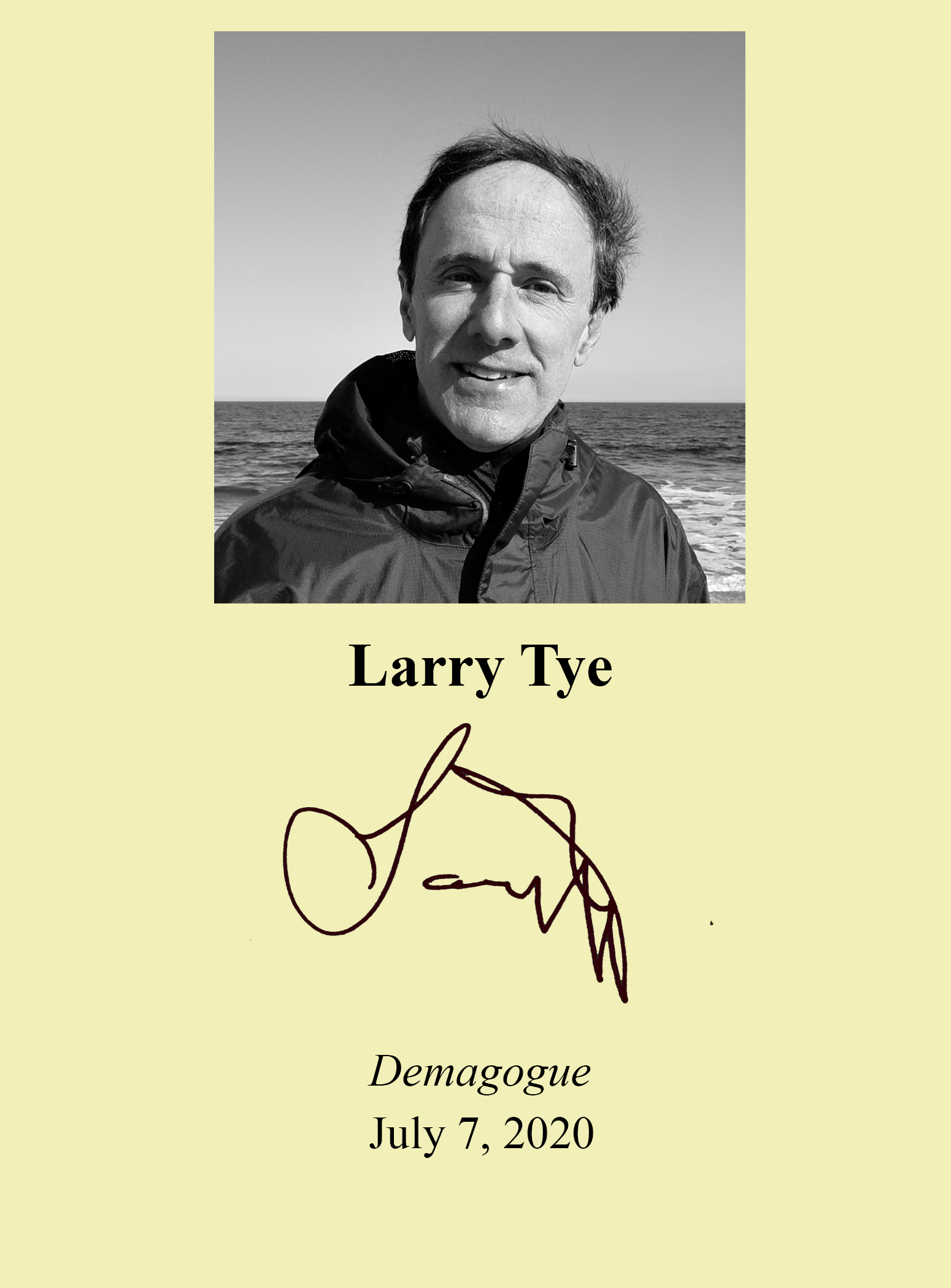 LARRY TYE is a former journalist, having worked everyone from the Anniston Star to the Boston Globe. His previous books touch on subjects as diverse the Negro League legend Satchel Paige, Superman, the Jewish diaspora, the Pullman porters, and electroconvulsive therapy. Thank you Larry Tye for signing our books.