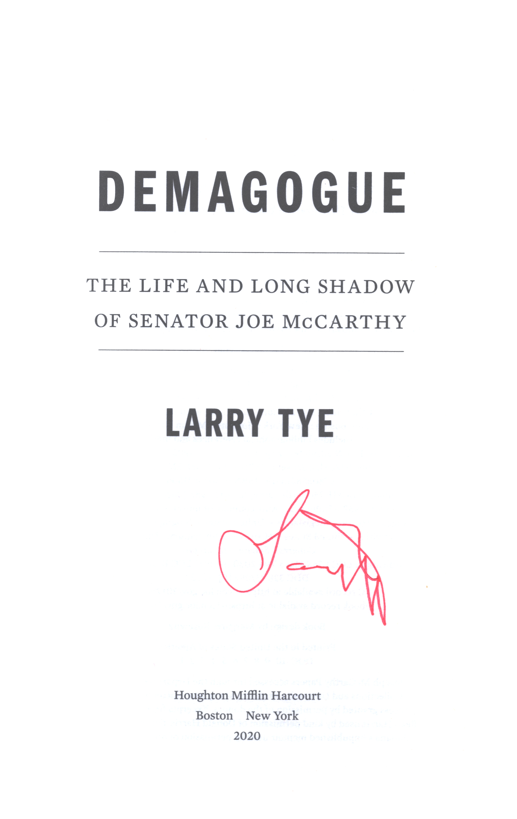 DEMAGOGUE is a masterful portrait of Senator Joseph McCarthy, who led the Red Scare to uproot a supposed Communist infiltration of the United States governement from 1950 to 1954, destroying countless lives in a paranoid, self-serving search for agitators. Larry Tye is the first author to draw on McCarthy's personal and professional correspondence, medical and military records, as well as recently unsealed Congressional hearing testimony, to create a captivating portrait of how a man like McCarthy could rise to such power so quickly, and also how one can fall from grace just as quickly.