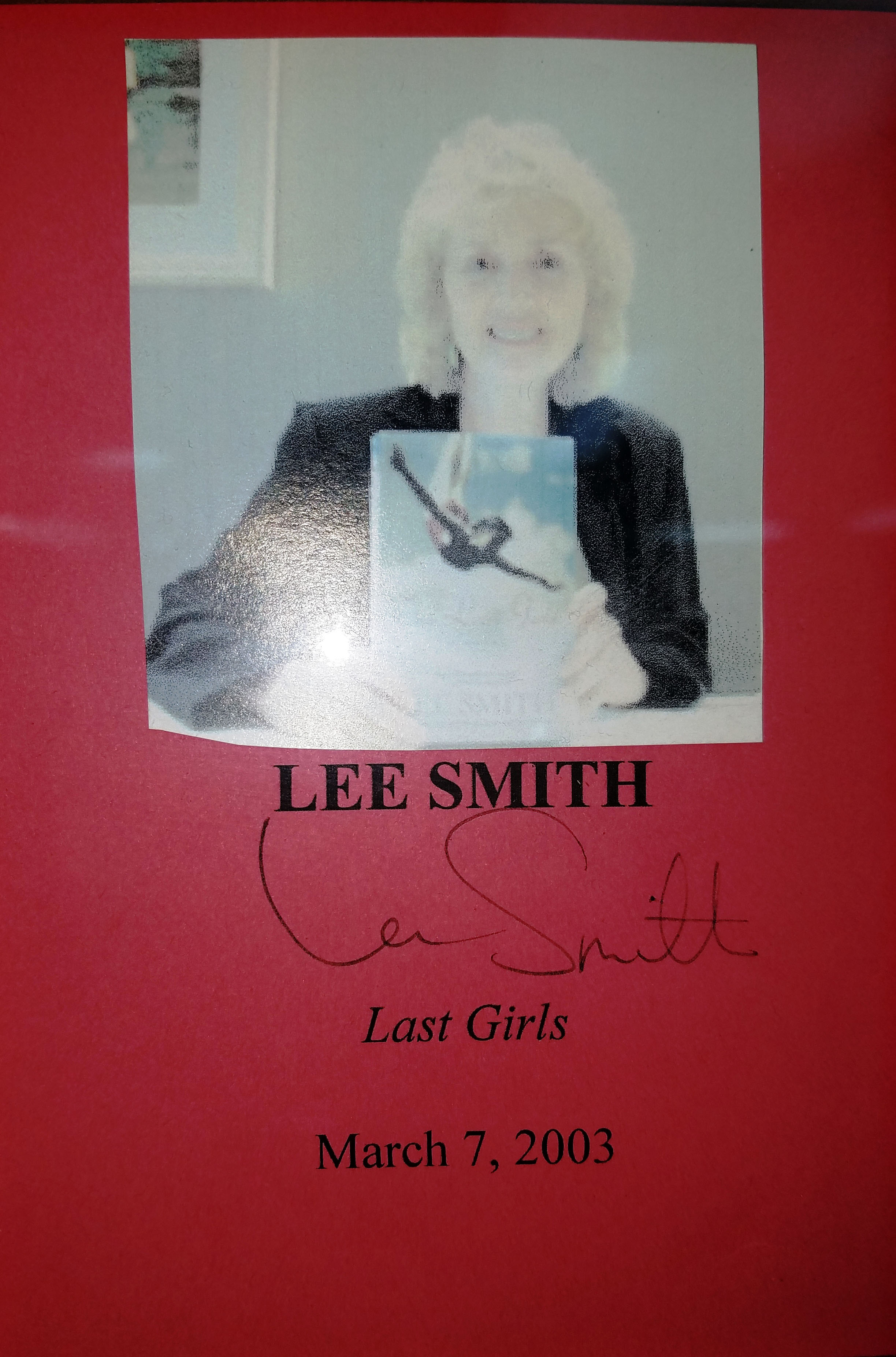 LEE SMITH (pictured below from our Wall of Fame) is the award-winning author of almost twenty books and one of the most beloved of Southern writers. Thank you Lee Smith for signing our books.