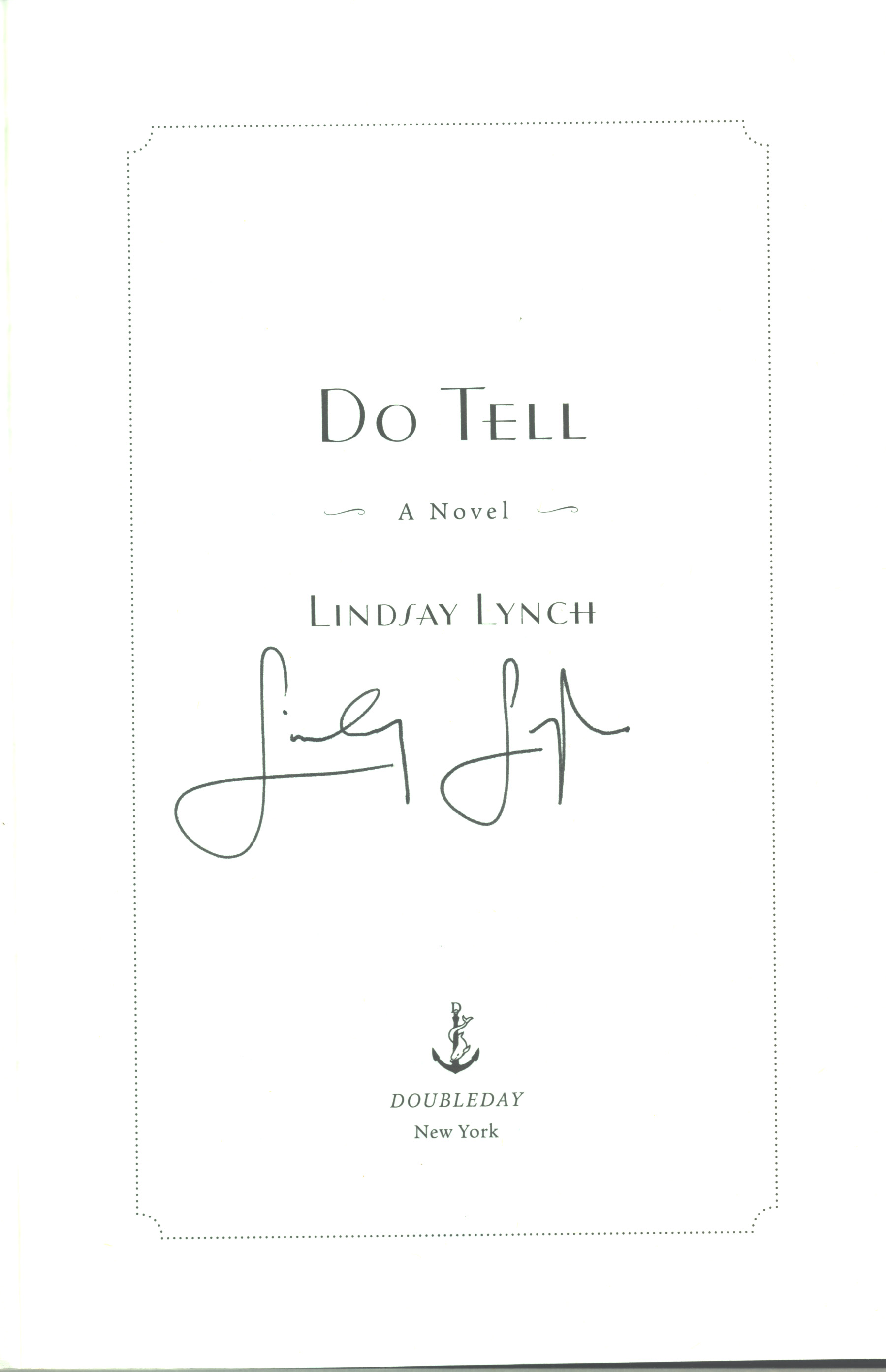 THIS COPY (shown below) was hand signed by Lindsay Lynch on the title page. It is a new, unread, first edition, opened only for sihgning and comes with a certificate authenticating the signature. Published in July, 2023 by Doubleday, an imprint of Penguin Random House.