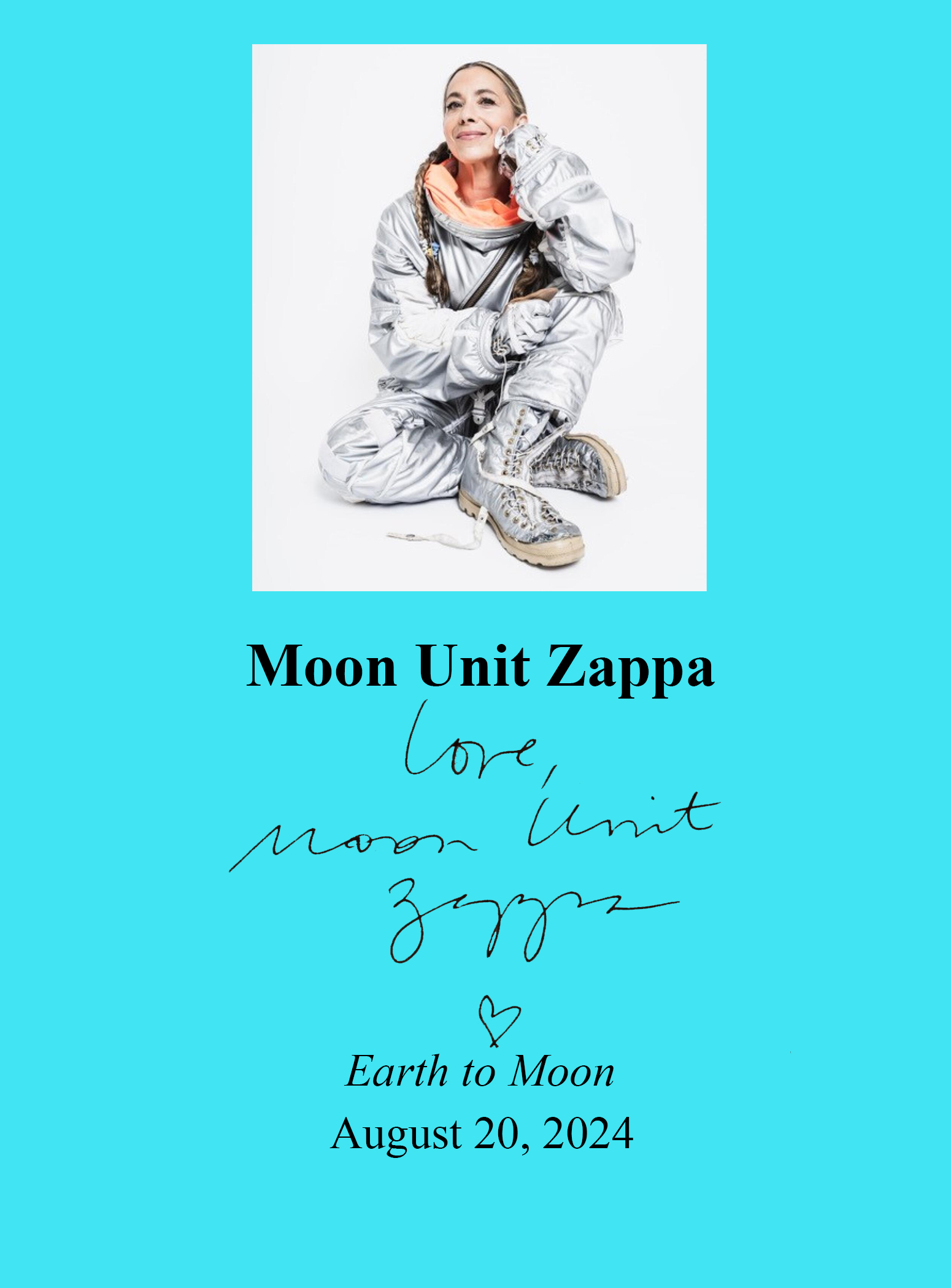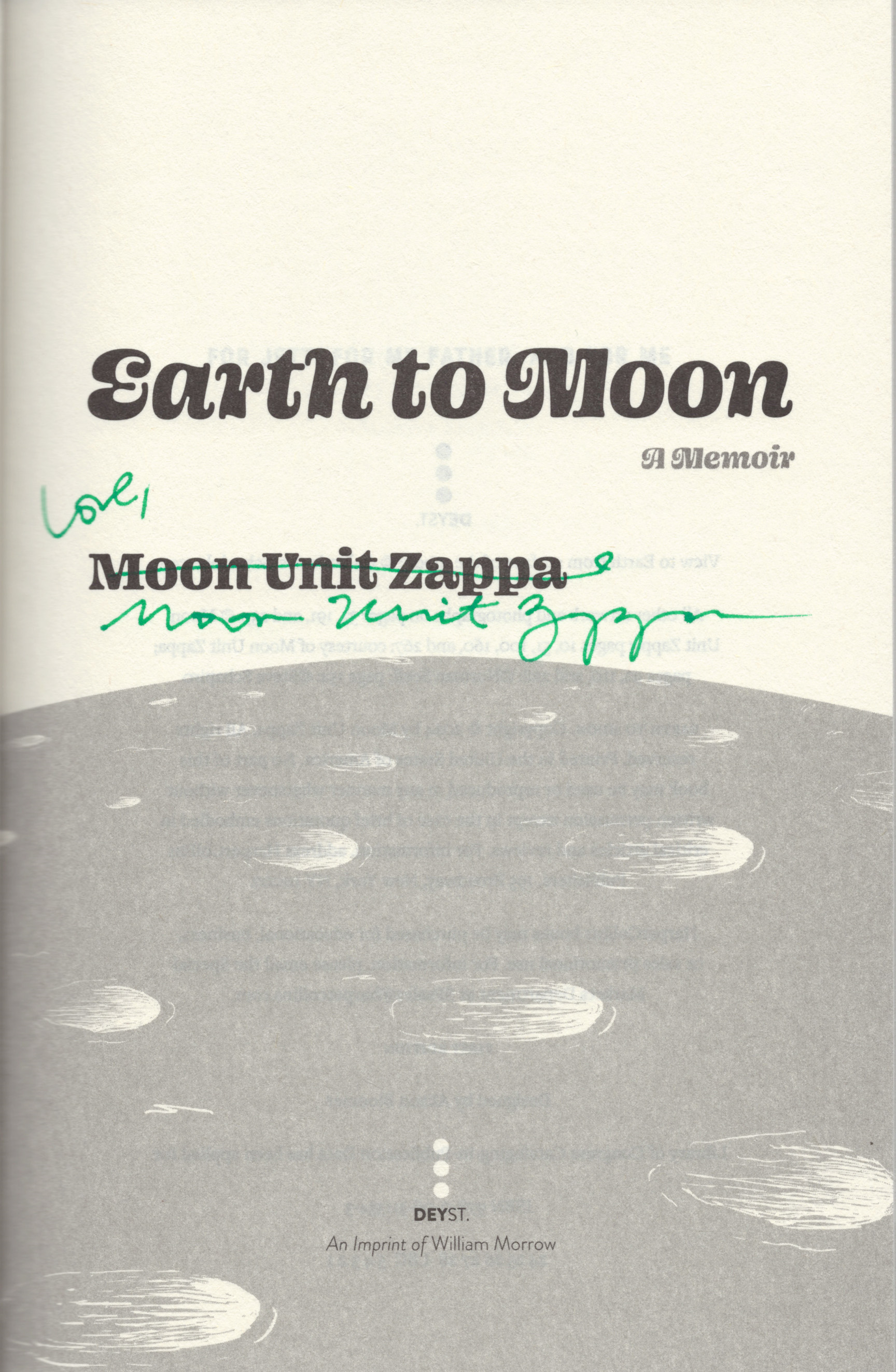 THIS COPY (shown below) was hand signed by Moon Unit Zappa on the title page. It is a new, unread first edition opened only for signing, and comes with a certificate authenticating the signature. Published in August, 2024 by Dey Street, an imprint of Harpercollins.
