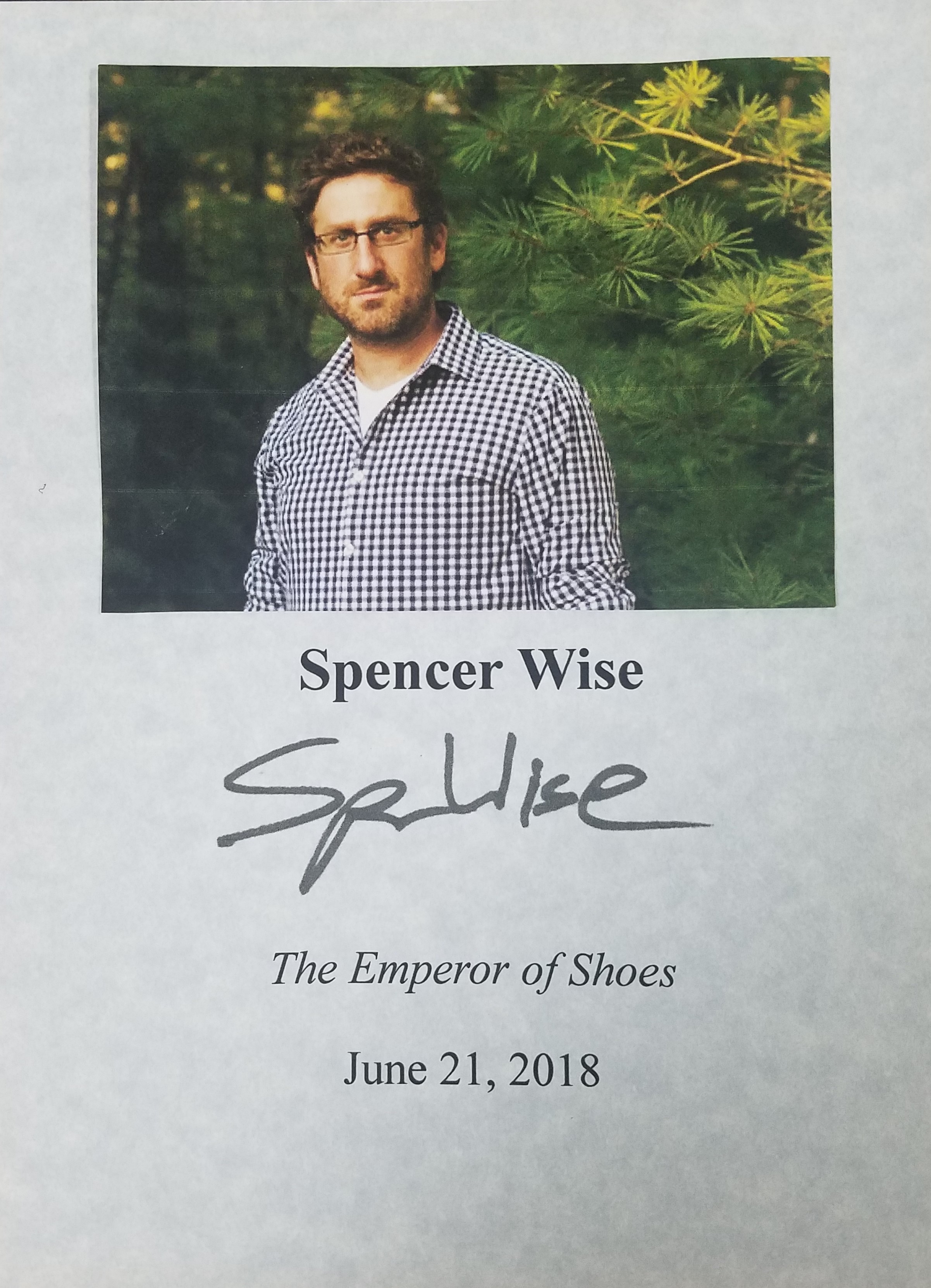 SPENCER WISE and his writing have appeared in Narrative magazine, Hayden’s Ferry Review, The Florida Review, and New Ohio Review. He is the recipient of the 2017 Gulf Coast Prize in nonfiction and a Vermont Studio Center fellowship. He has a PhD from Florida State University in creative writing and teaches at Augusta University. Thank you Spencer Wise for signing our books.