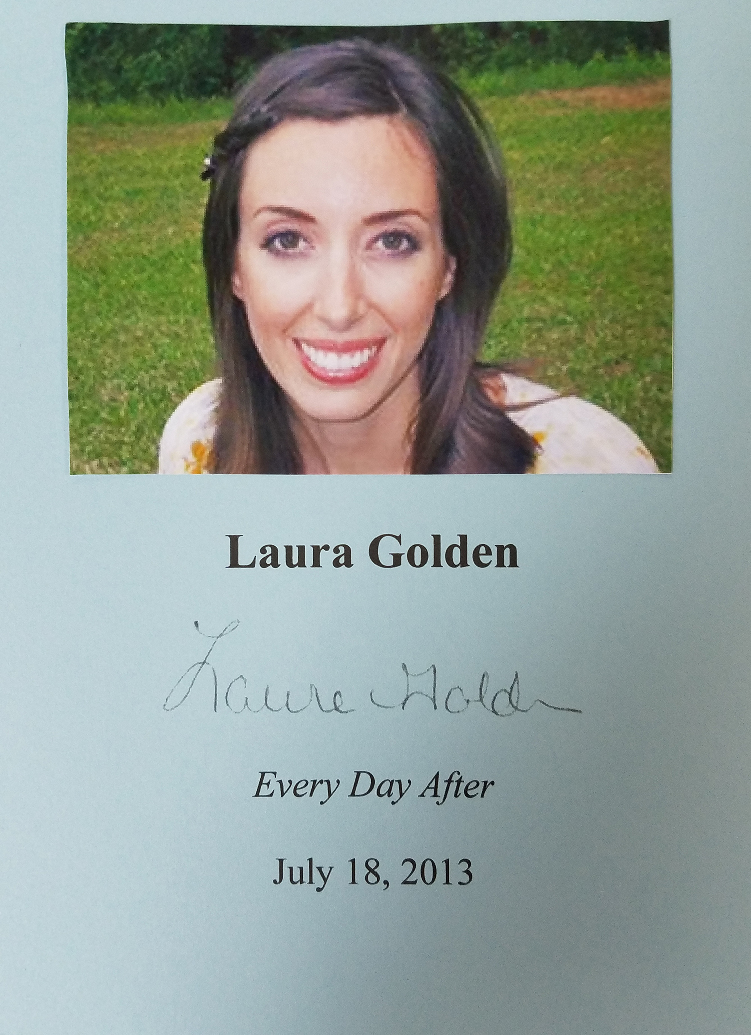 LAURA GOLDEN (pictured below from our Wall of Fame) Is a Birmingham writer, inspired by fellow Alabama authors Harper Lee and Fannie Flagg. She still lives just down the road from Birmingham in the countryside. Thank you Laura Golden for signing our books.