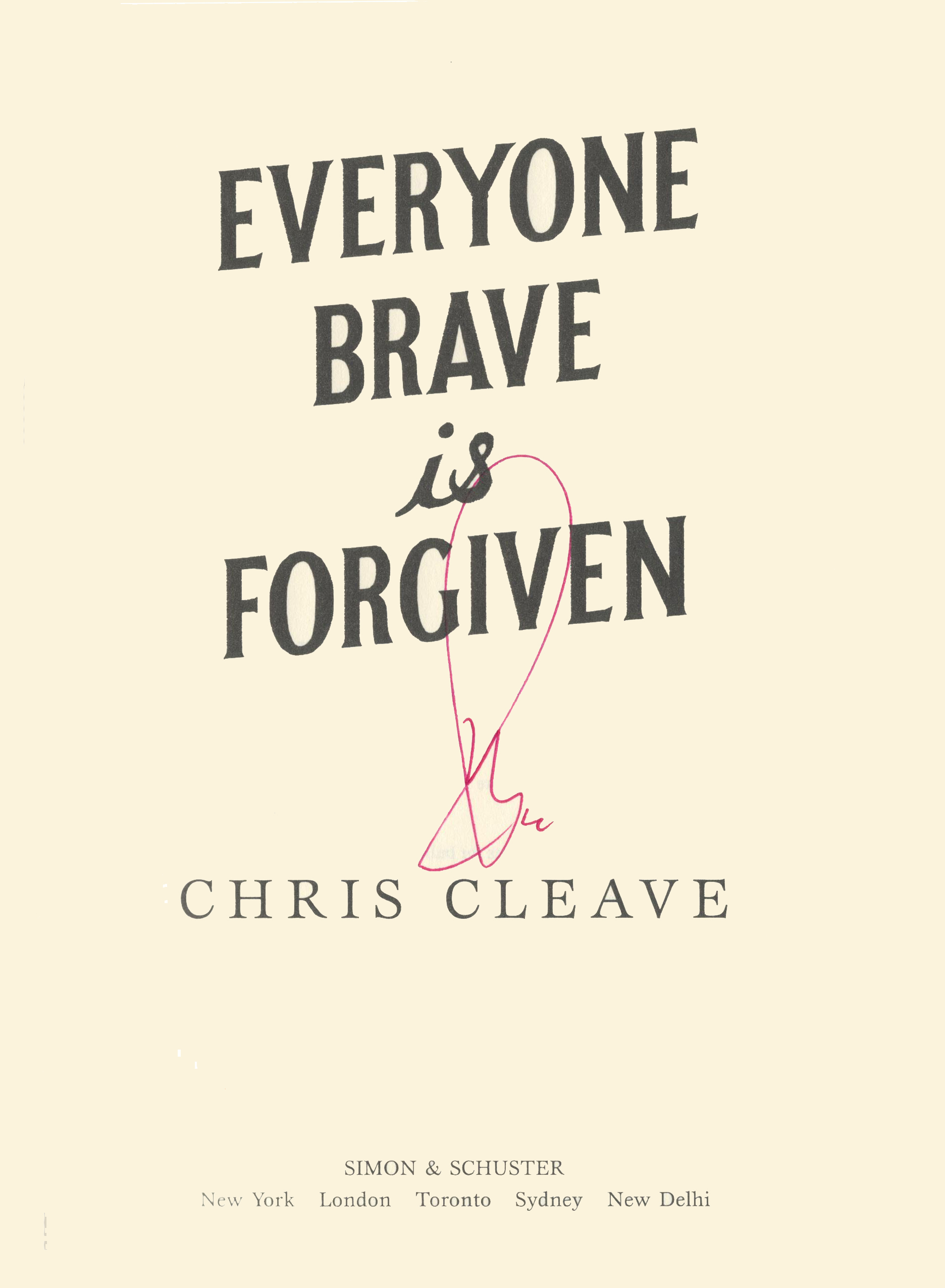 THIS COPY (shown below) was hand signed by Chris Cleave on the title page at his New York office. It is a new, unread first edition opened only for signing and comes with a certificate authenticating the signature. Published in March, 2016 by Simon & Schuster.