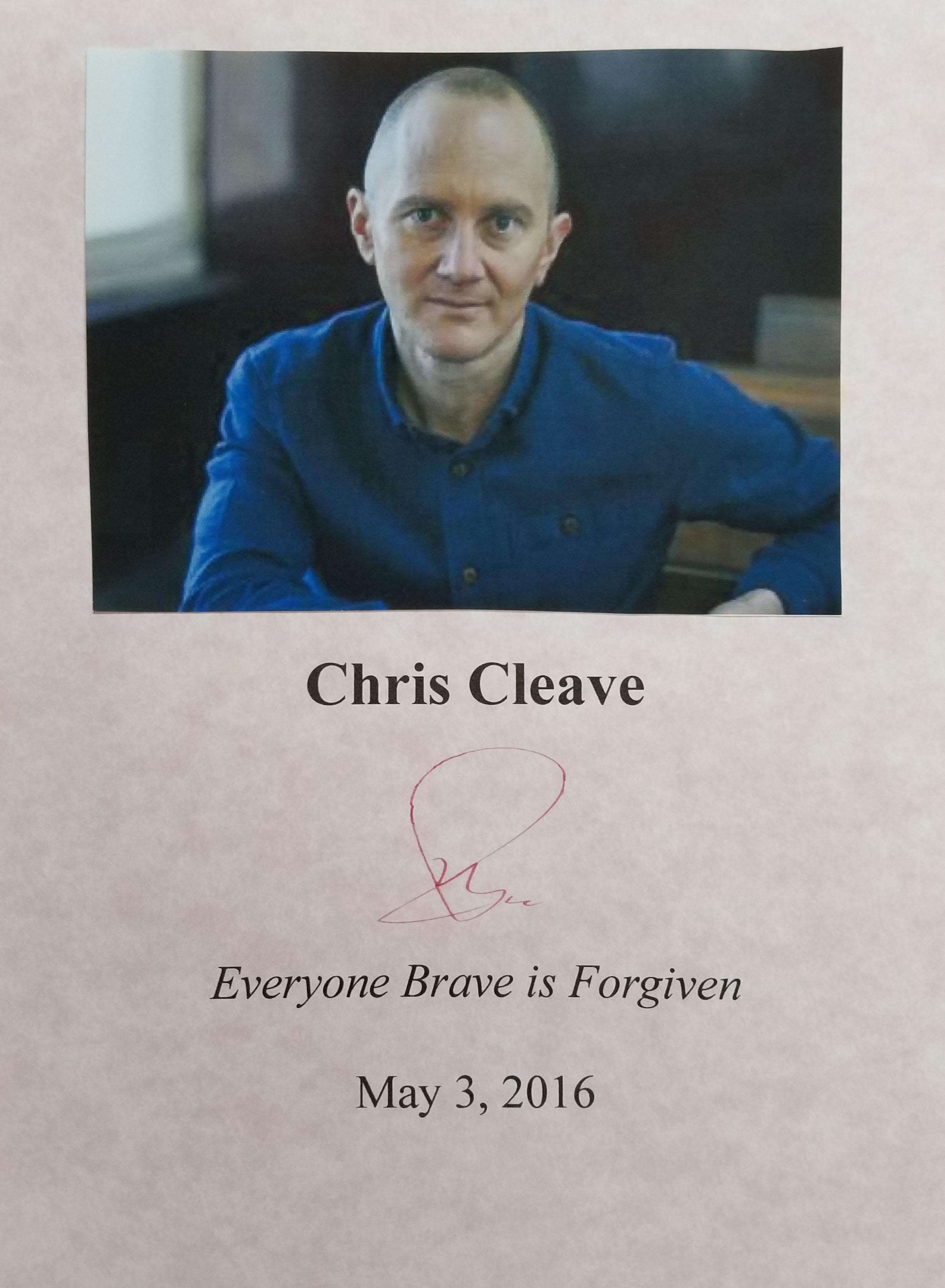 CHRIS CLEAVE (pictured below from our Wall of Fame) is one of England's most awarded writers and his books have been published in twenty countries. He is a New York Times #1 best-seller. Thank you Chris Cleave for signing our books.