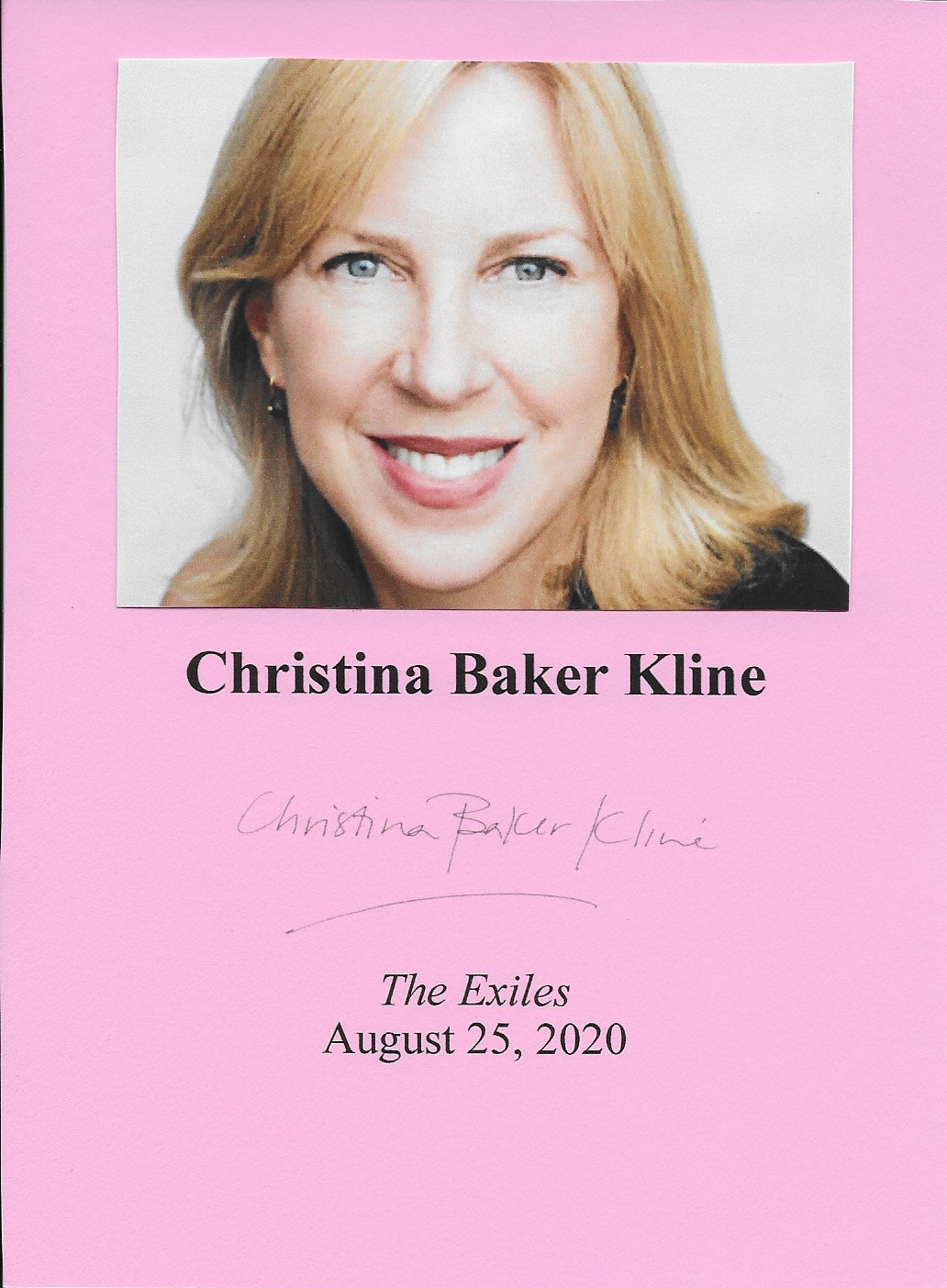 CHRISTINA BAKER KLINE (pictured below from our Wall of Fame) has written over half a dozen books, including the bestseller Orphan Train and A Piece of the World. Thank you Christina Baker Kline for signing our books.