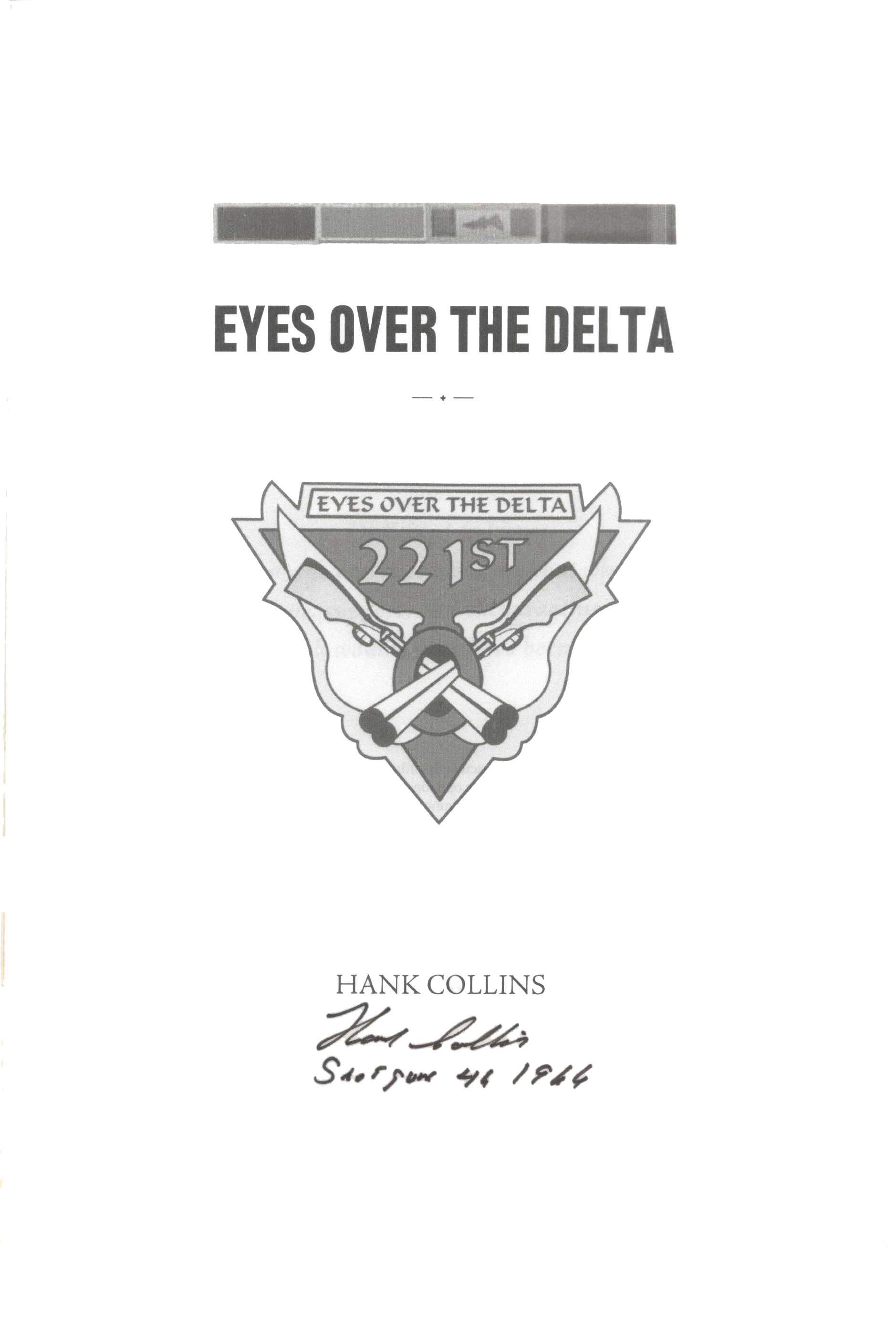 THIS COPY (shown below) was hand signed by Major Hank Collins on the title page at the launch. It is a new, unread first edition opened only for signing and comes with a certificate authenticating the signature. Published in August, 2014 by Outskirts Press.