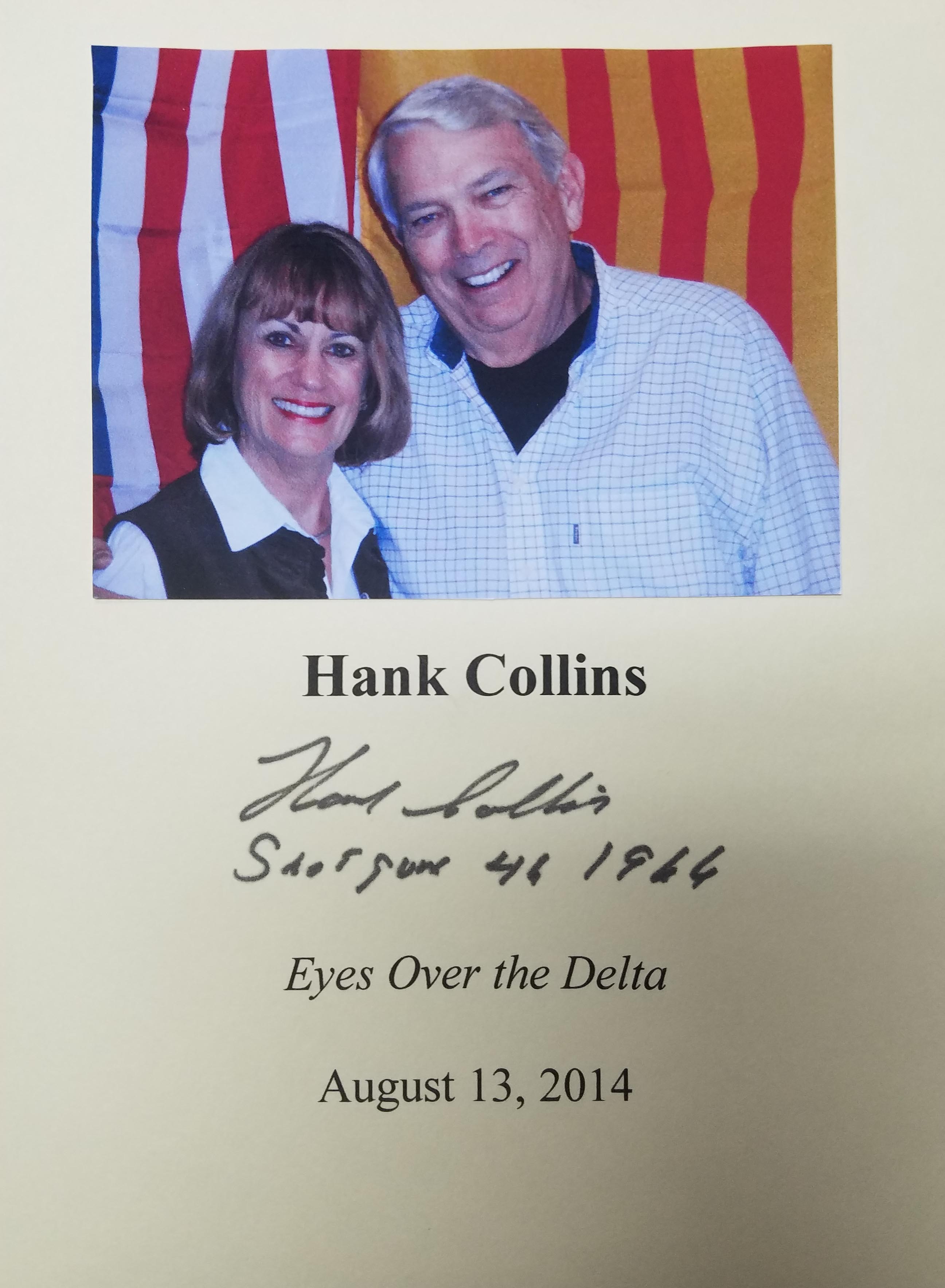 MAJOR HANK COLLINS (pictured below from our Wall of Fame) received the Distinguished Flying Cross, the Air Medal with V Device and 12th Oak Leaf Cluster, the Bronze Star Medal, and three Cross of Gallantry medals awarded to him by the Republic of South Vietnam. He is an award winning writer. Thank you Major Hank Collins for signing our books.