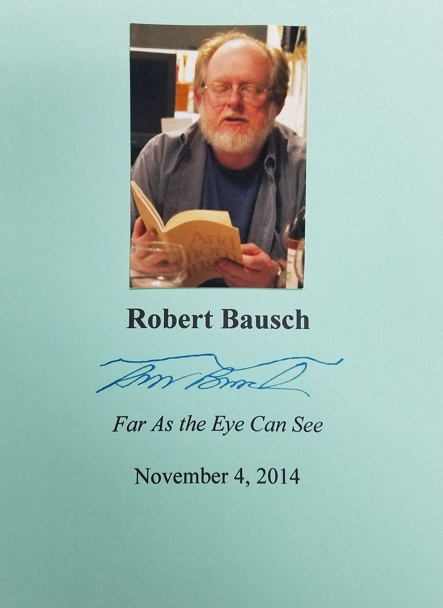 ROBERT BAUSCH (pictured below from our Wall of Fame) has won numerous awards, and was twice a Pulitzer finalist. We believe he may be one of the finest little-known writers in the business. Thank you Robert Bausch for signing our books.