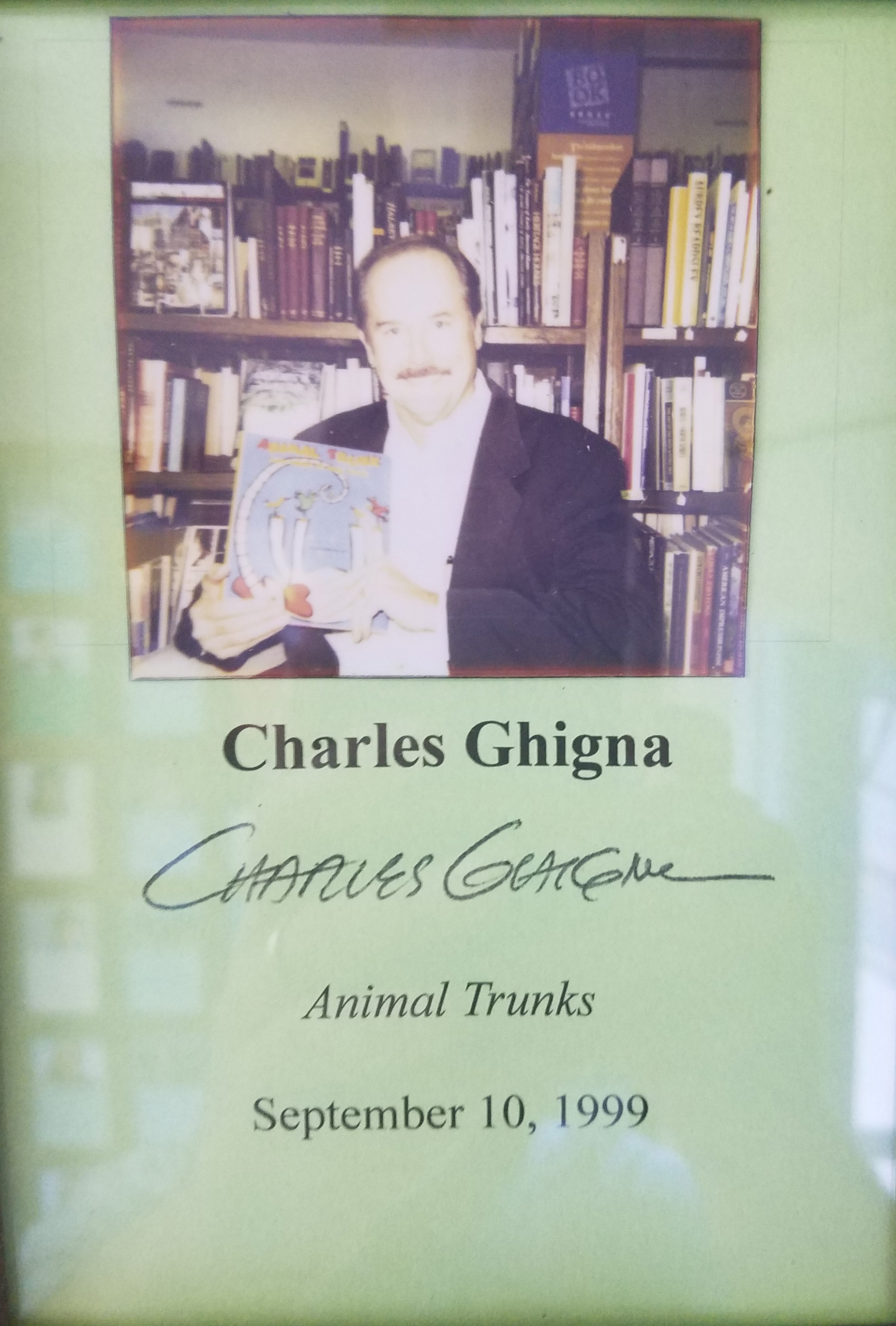 CHARLES GHIGNA (pictured below from our Wall of Fame) lives in a treehouse we can almost see out our top floor window. He has read at the Library of Congress, The John F. Kennedy Center for the Performing Arts, the American Library in Paris and the International School of South America. His poetry was nationally syndicated by Tribune Media Services. Thank you Charles Ghigna for signing our books.