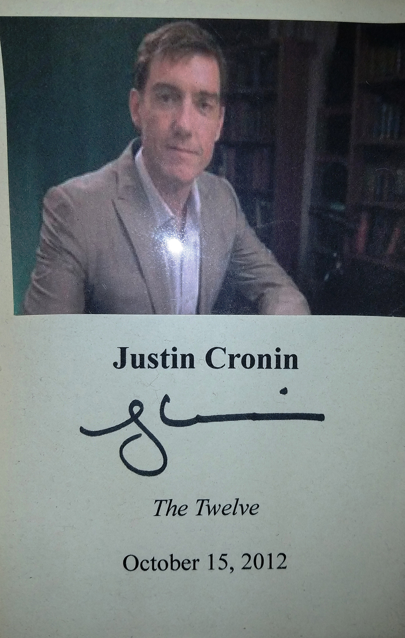 JUSTIN CRONIN (pictured below on our Wall of Fame) is a New York Times best-selling author, and has won the PEN/Hemingway Award. Thank you Justin Cronin for signing our books.