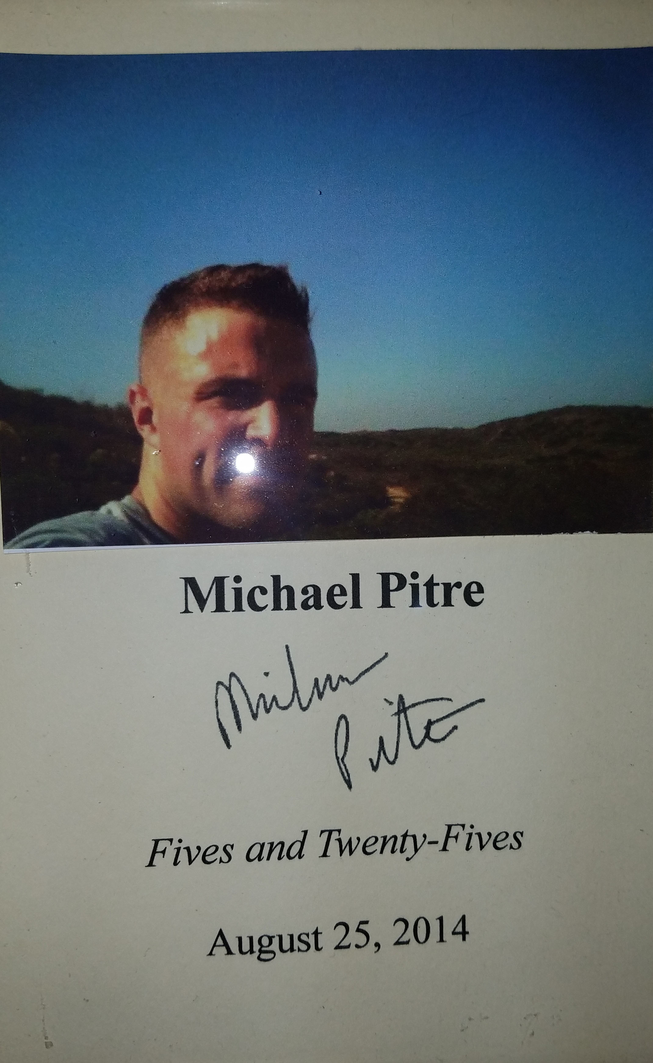 MICHAEL PITRE (pictured below from our Wall of Fame) was a Marine combat officer in Iraq before receiving a graduate degree at Loyola. This is his debut novel.Thank you Michael Pitre for signing our books.