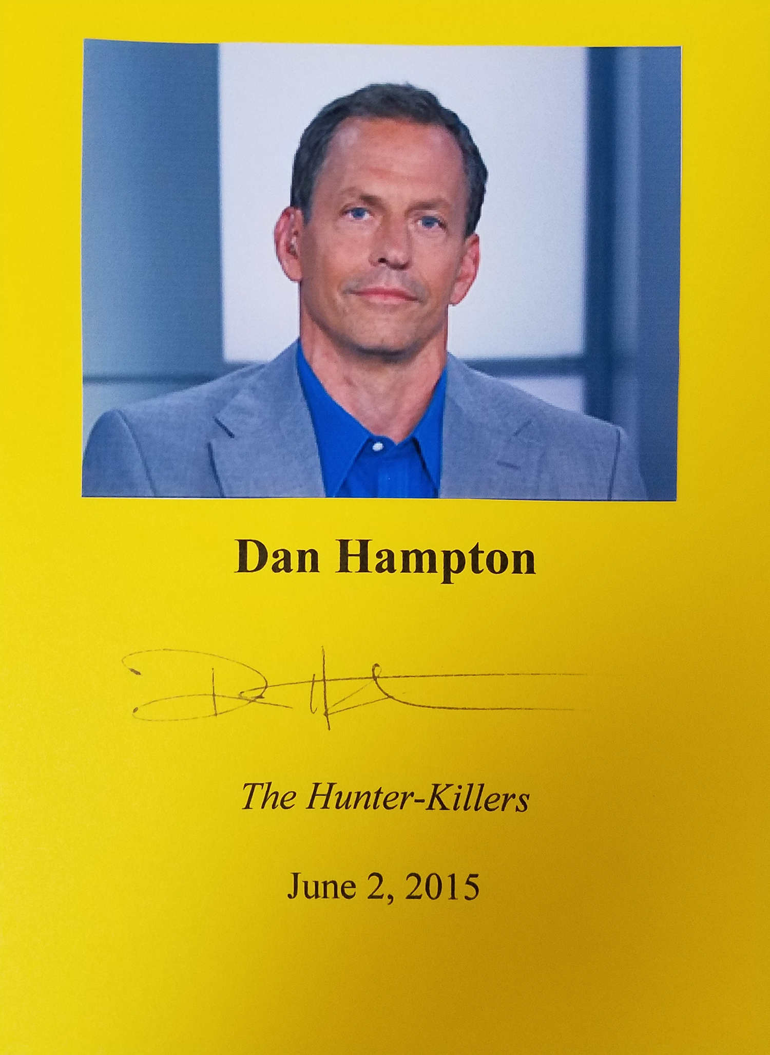 DAN HAMPTON (pictured below from our Wall of Fame) is a retired Air Force pilot who flew 151 combat missions with a total of 726 career combat hours. He fought in The Gulf War, The Kosova War and the Iraq War. He was awarded the Distinguished Flying Cross, the Air Medal with Valor , the Meritorious Service Medal and the Purple Heart. He flew the famous F16, known as the Wild Weasels whose mission was to hunt down and destroy Surface-To-Air missile sites (SAM), considered the most dangerous job in the air. Thank you Dan Hampton for signing our books.