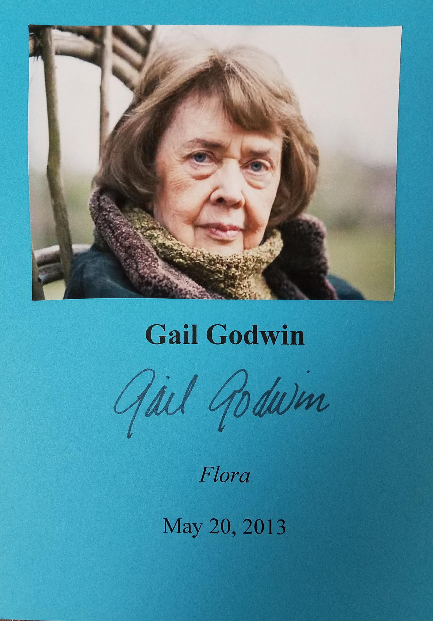 GAIL GODWIN (pictured below from our Wall of Fame) is a homegirl, born in Birmingham. She is a New York Times Best Seller and three times National Book Award finalist. After six years of living in Europe, she earned her PhD at Iowa and then taught English.  She received a Guggenheim Fellowship and a grant from the National Endowment for the Arts. She was awarded the Literature Prize from the American Academy of Arts and Letters. Thank you Gail Godwin for signing our books.