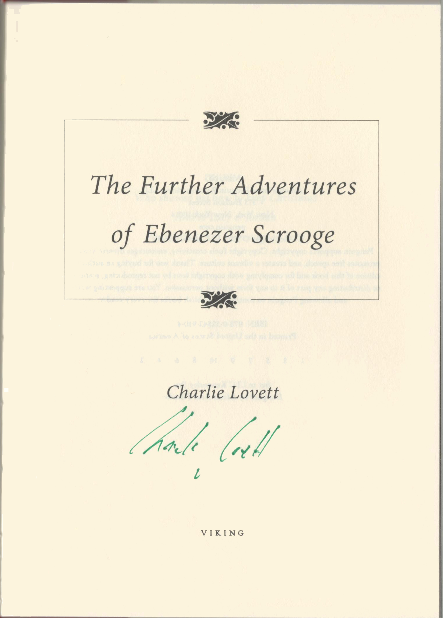 THE FURTHER ADVENTURES OF EBENEZER SCROOGE is Charlie Lovett's imagined sequel to the Dickens classic. It is so pitch perfect, it could easily have been penned by the master, himself. It is both a loving tribute and a wonderful gift.