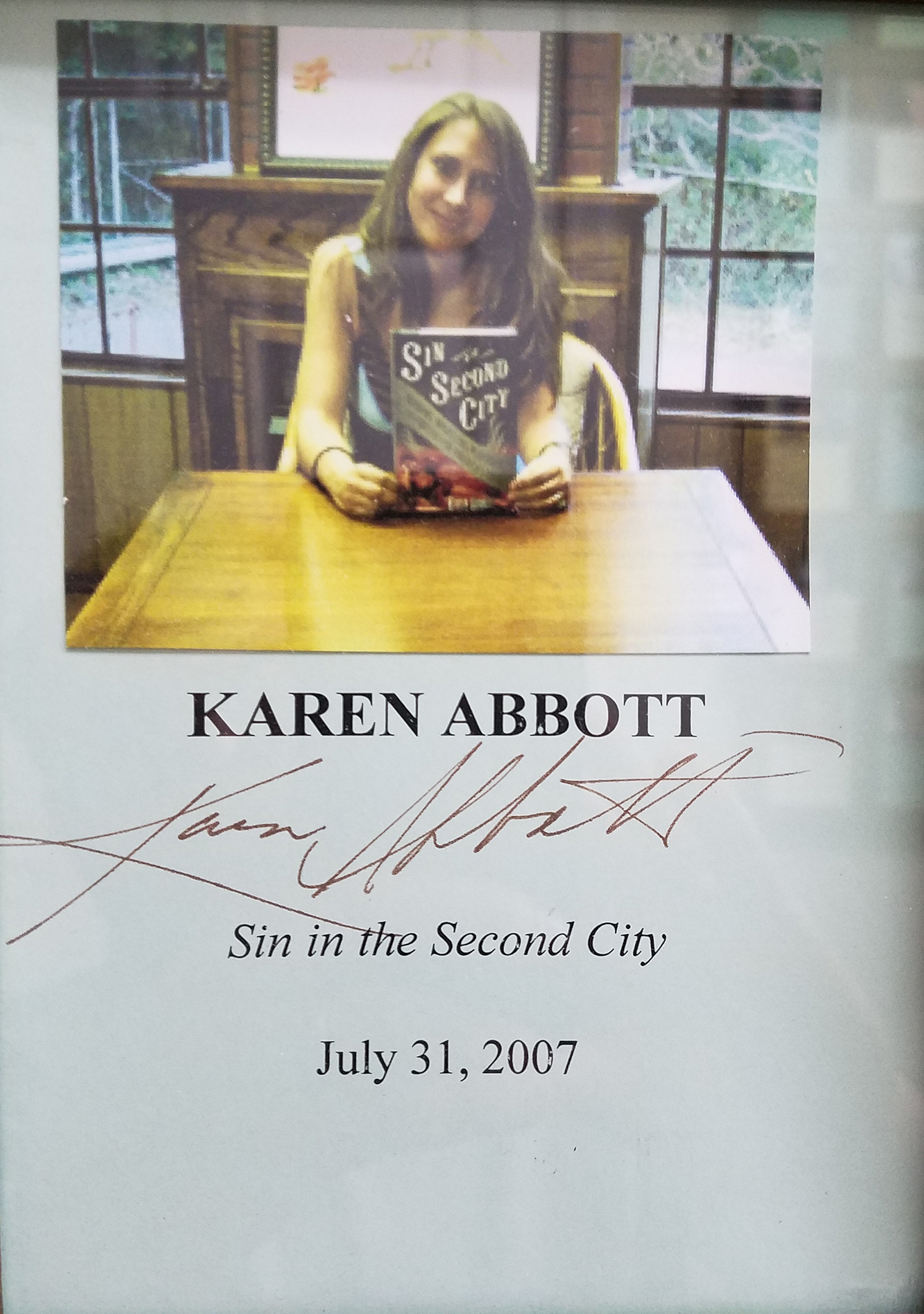 KAREN ABBOTT (pictured below from our Wall of Fame) is a New York Times bestselling author of numerous and varied histories, including American Rose about the infamous burlesque performer Gypsy Lee Rose and Liar, Temptress, Solider, Spy about the efforts of women during the Civil War, which was named one of the best books of the year by Library Journal and the Christian Science Monitor. Thank you Karen Abbott for signing our books.