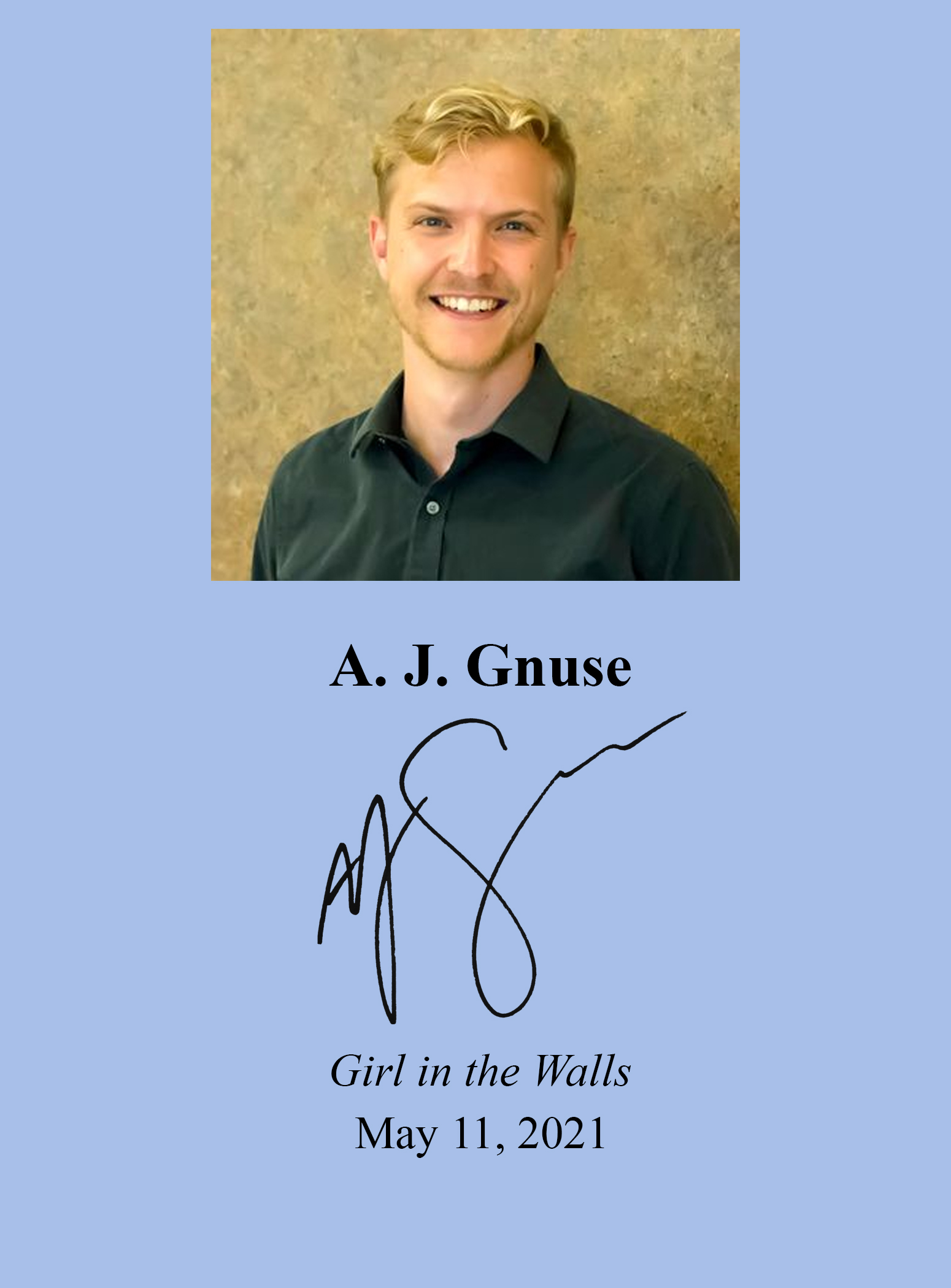 A.J. GNUSE (pictured below from our Wall of Fame) has been featured in literary publications around the country. This is his first novel. Thank you A.J. Gnuse for signing our books.