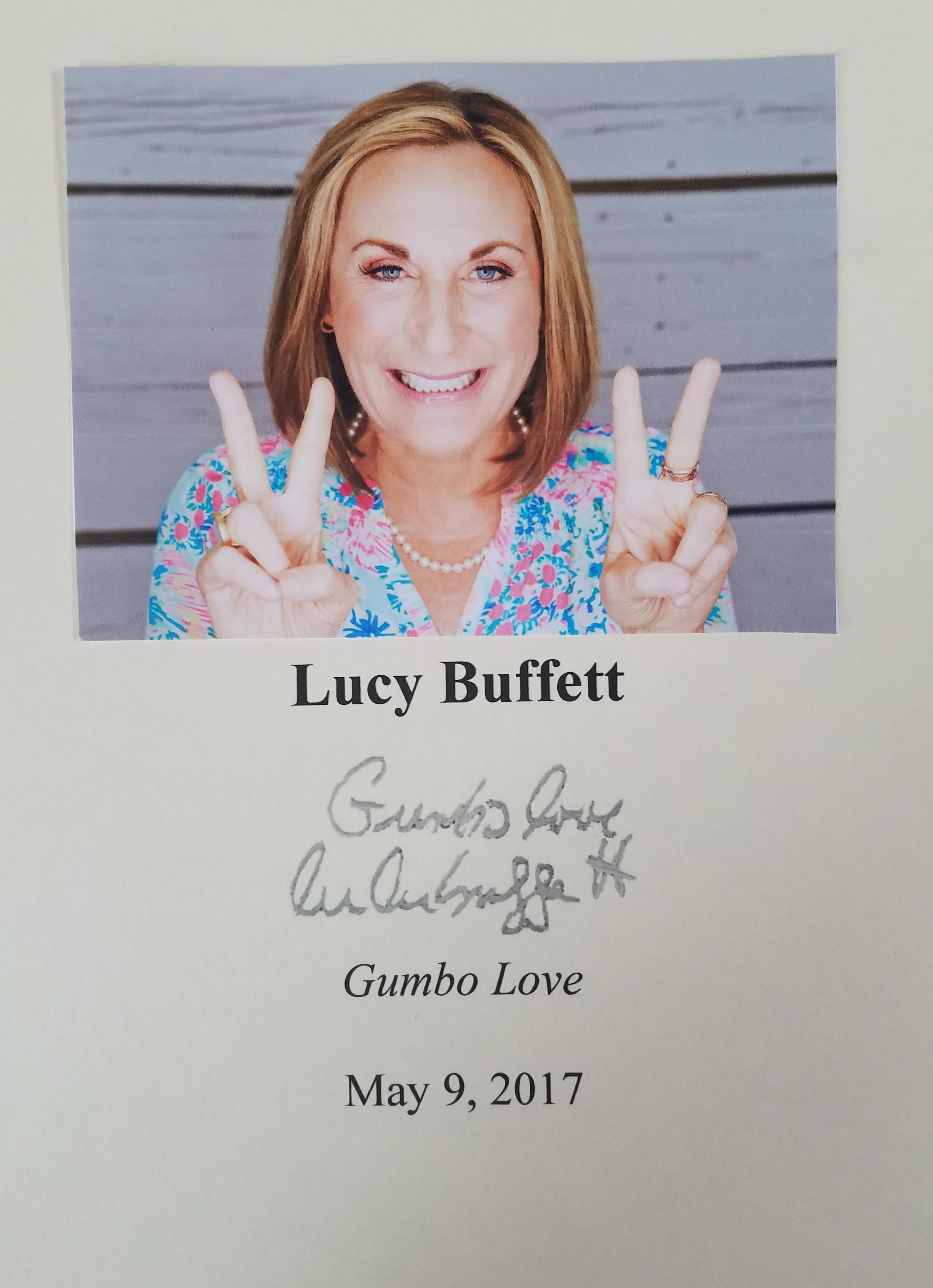 THIS COPY (shown below) was hand signed on the title page in silver ink by Lucy Buffett at the store. It is a new, unread first edition opened only for signing and comes with a certificate authenticating the signature. Published in May, 2017 by Grand Central, an imprint of the Hachette Book Group.