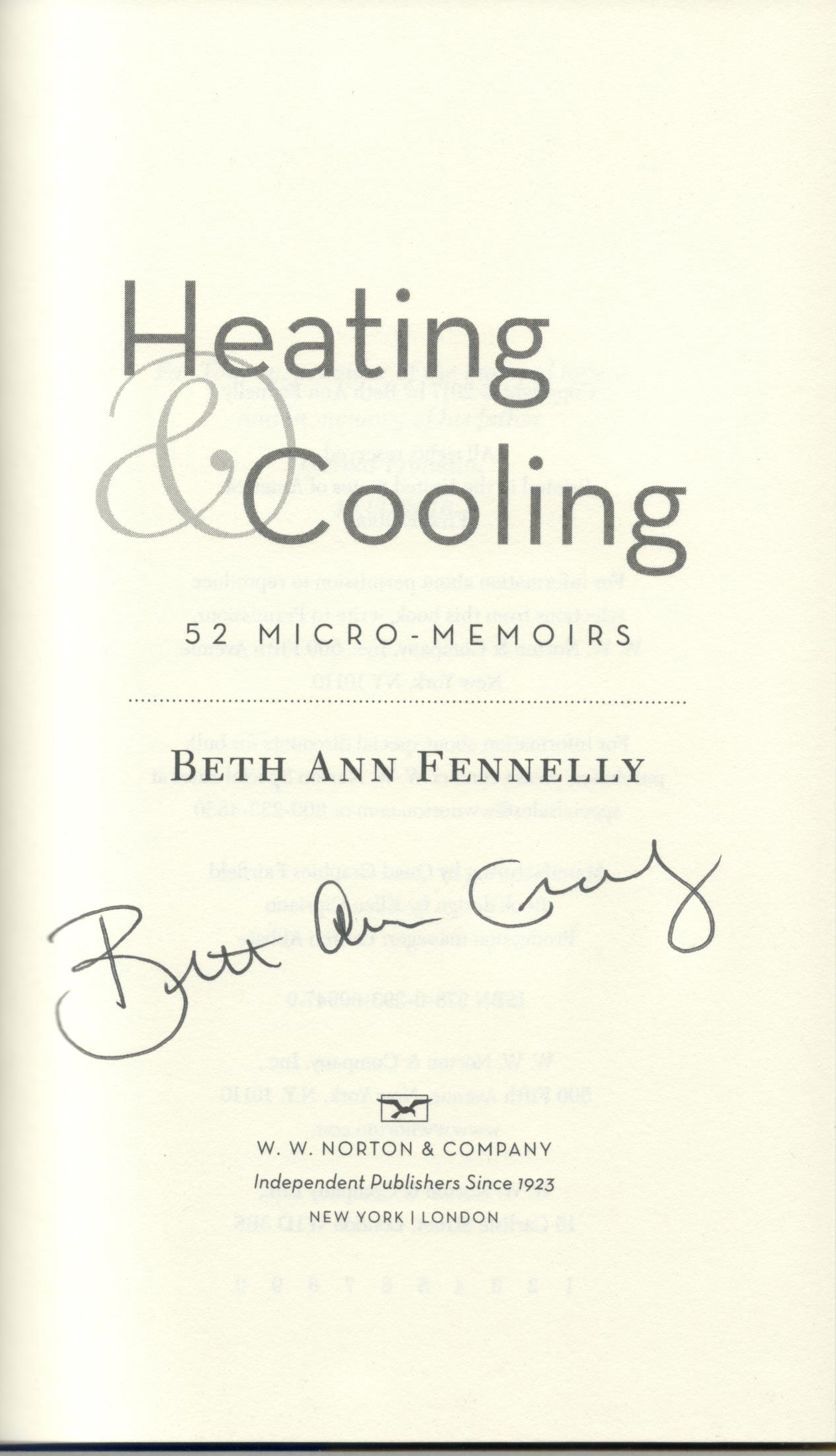 THIS COPY (shown below) was hand signed on the title page by Beth Ann Fennelly at the store. It is a new, unread first edition opened only for signing and comes with a certificate authenticating the signature. Published in October, 2017 by W.W. Norton.
