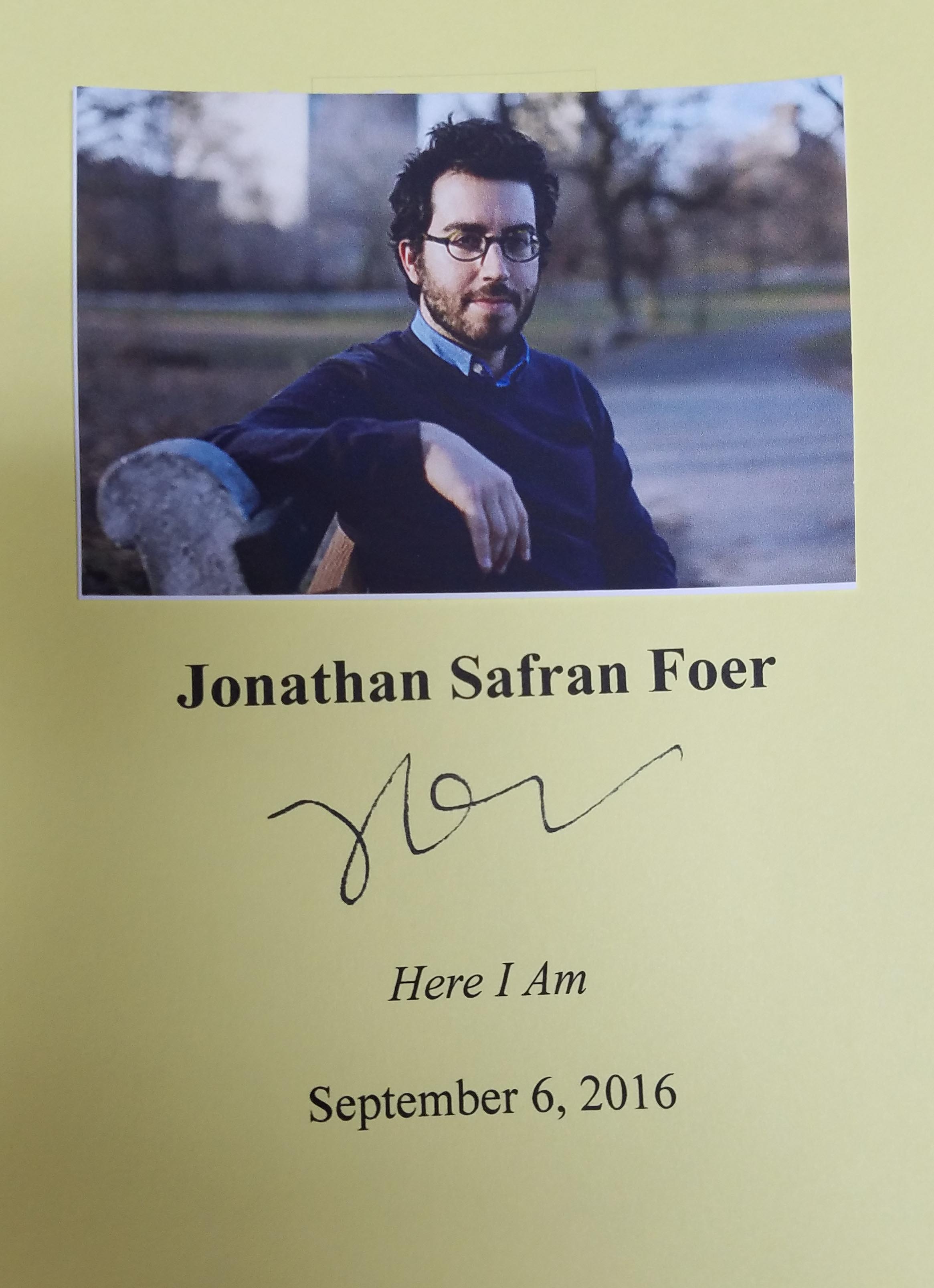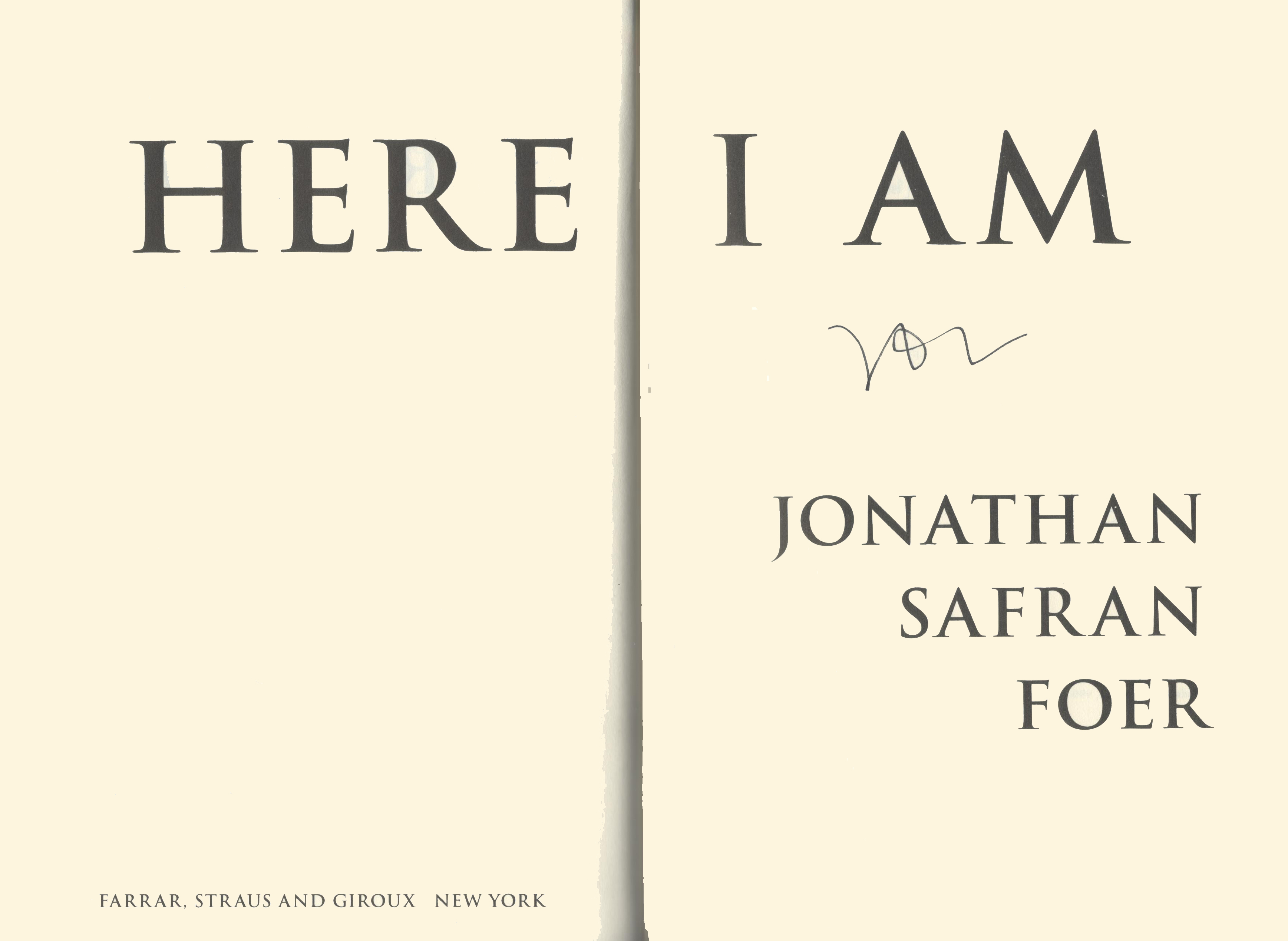 THIS COPY (shown below) was hand signed by Jonathan Safron Foer on the title page at his office. It is a new, unread first edition opened only for signing and comes with a certificate authenticating the signature. Published in September, 2016 by Farrar, Straus and Giroux, an imprint of MacMillian.