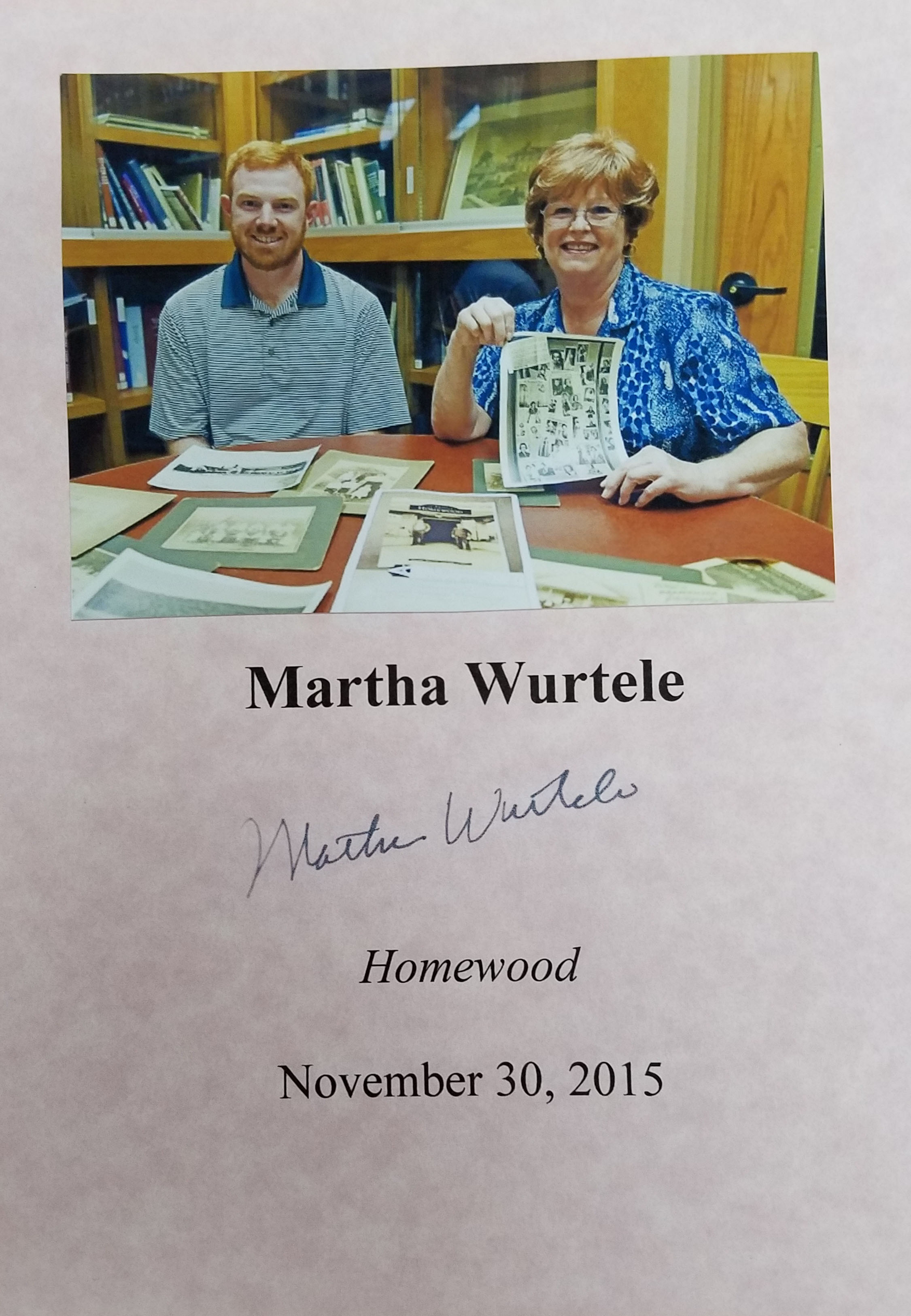 MARTHA WURETLE AND JAKE COLLINS (pictured below from our Wall of Fame) formed a dynamite team to produce this book. Martha, a lifelong Homewood native, began collecting photographs and conducting interviews in 1983 as president of the Friends of the Homewood Library and Jake incorporated the history of Homewood into his curriculum while teaching at Homewood Middle School. Thank you Martha Wurtele and Jake Collins for signing our books.