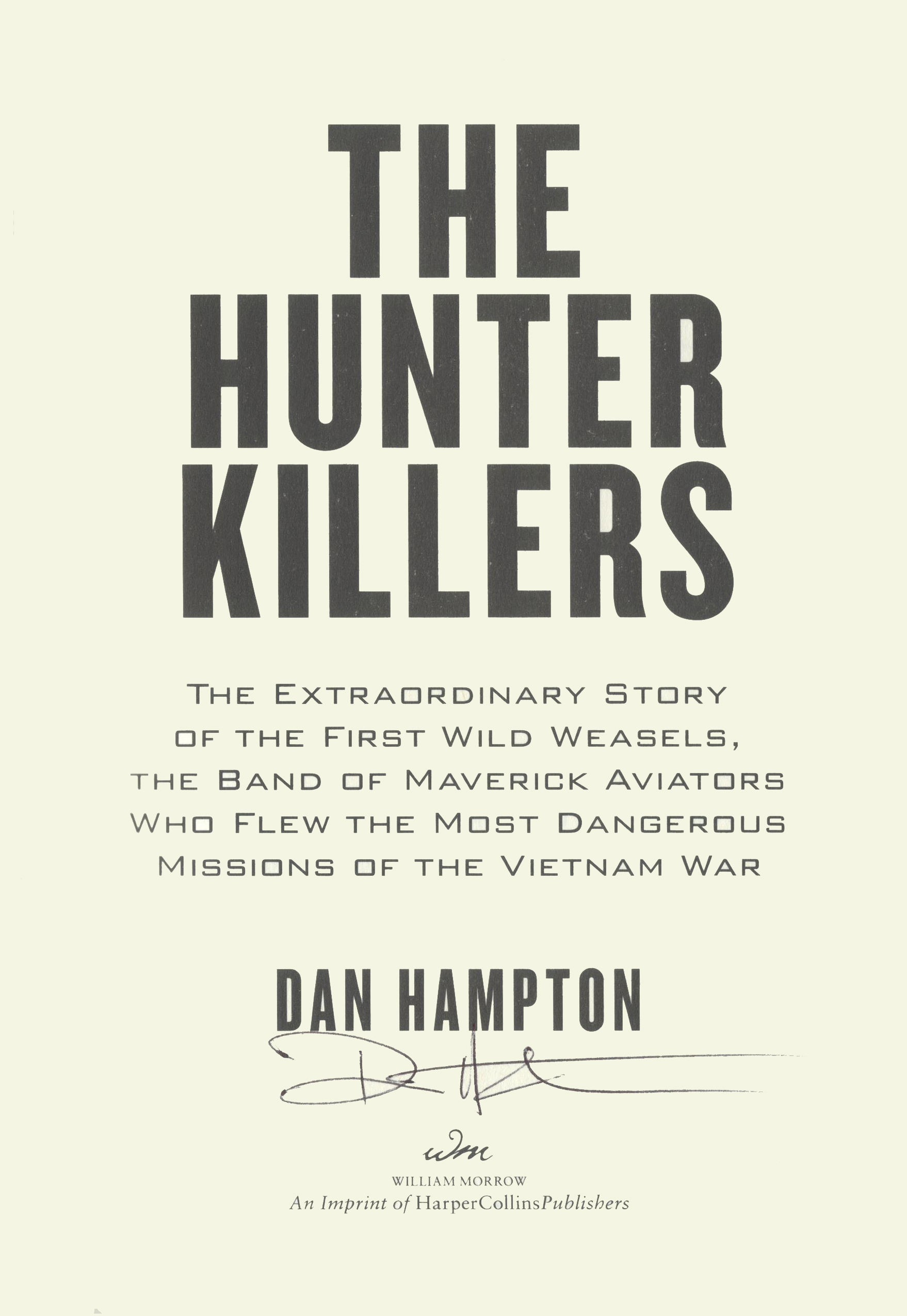 THE HUNTER KILLERS: THE EXTRAORDINARY STORY OF THE FIRST WILD WEASELS, THE BAND OF MAVERICK AVIATORS is about a top secret program to search and destroy surface-to-air missile sites at the beginning of the Viet Nam War. This scary concept called for our planes to hone in on a missile site that was blowing them out of the sky and get them first. Who better to tell the story than a talented writer, who actually had the same job more than a generation earlier.